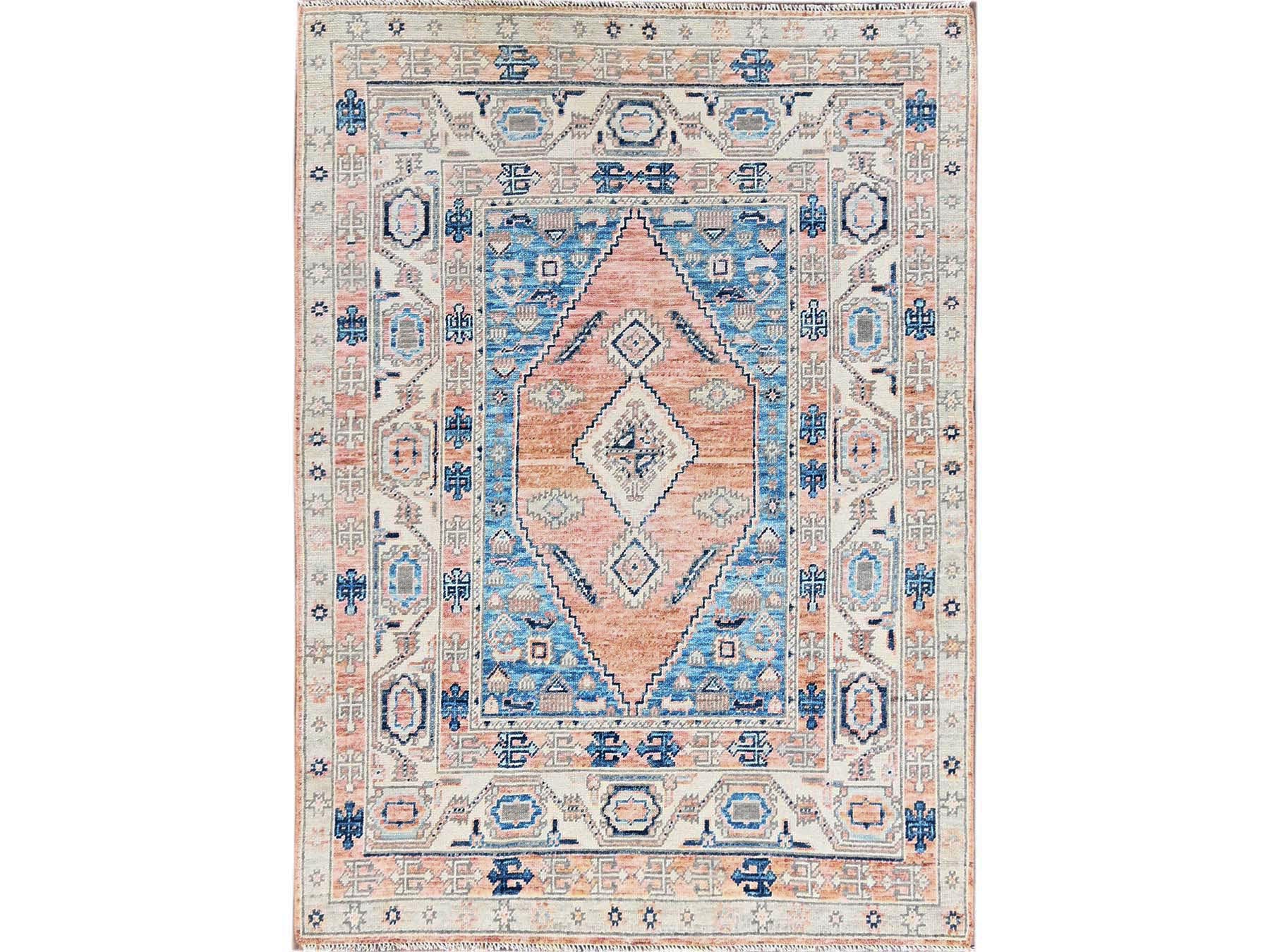 4'10" x 6'9" New Hand Knotted Orange Wool Rectangle Oriental Rug - MOA1022122