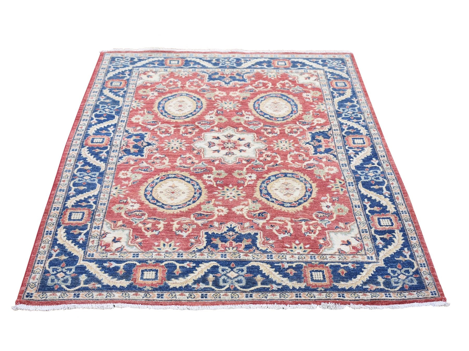 5'0" x 6'6" New Hand Knotted Red Wool Rectangle Oriental Rug - MOA10280078
