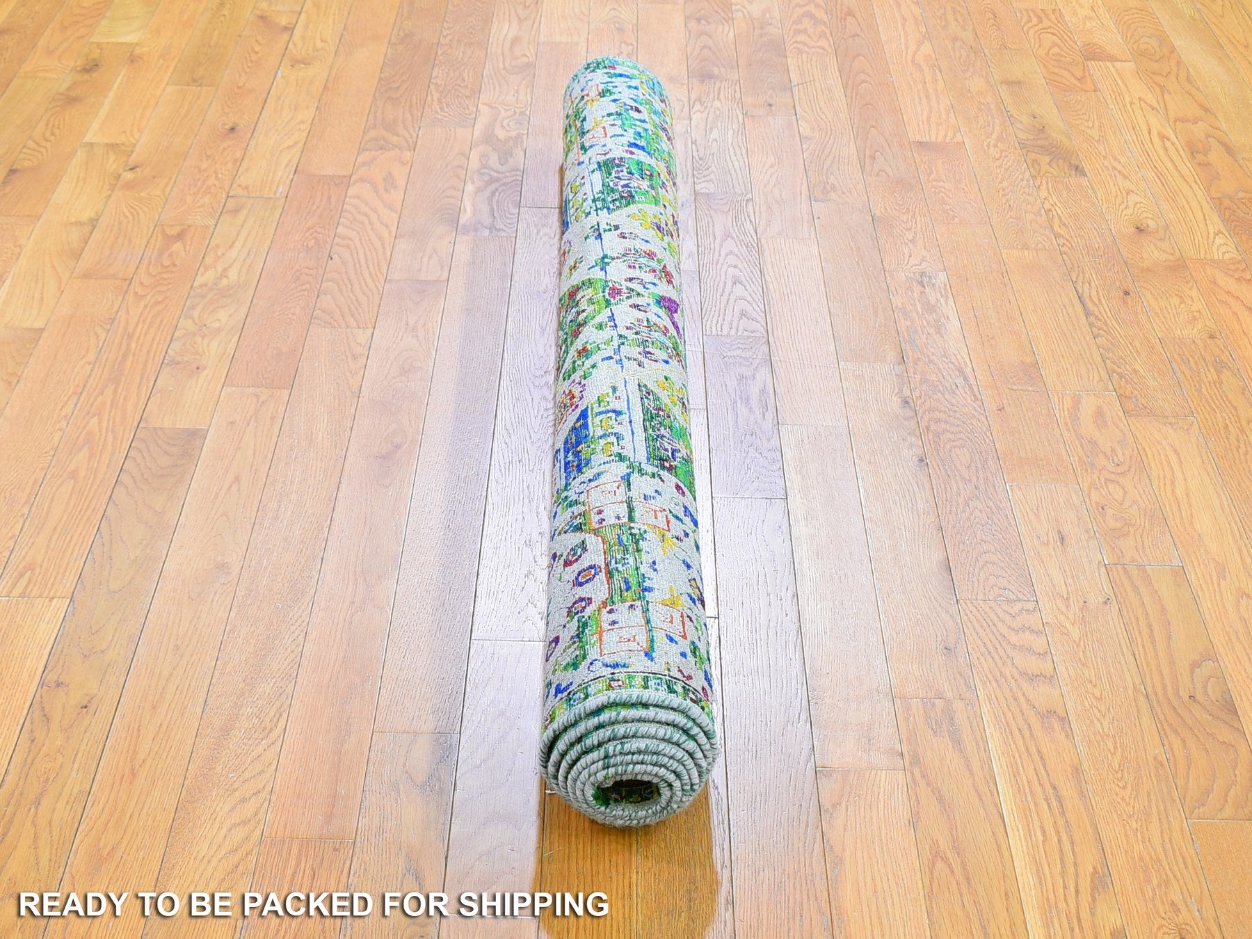 5'0" x 7'0" New Hand Knotted Green Wool & Art Silk Rectangle Oriental Rug - MOA10259728
