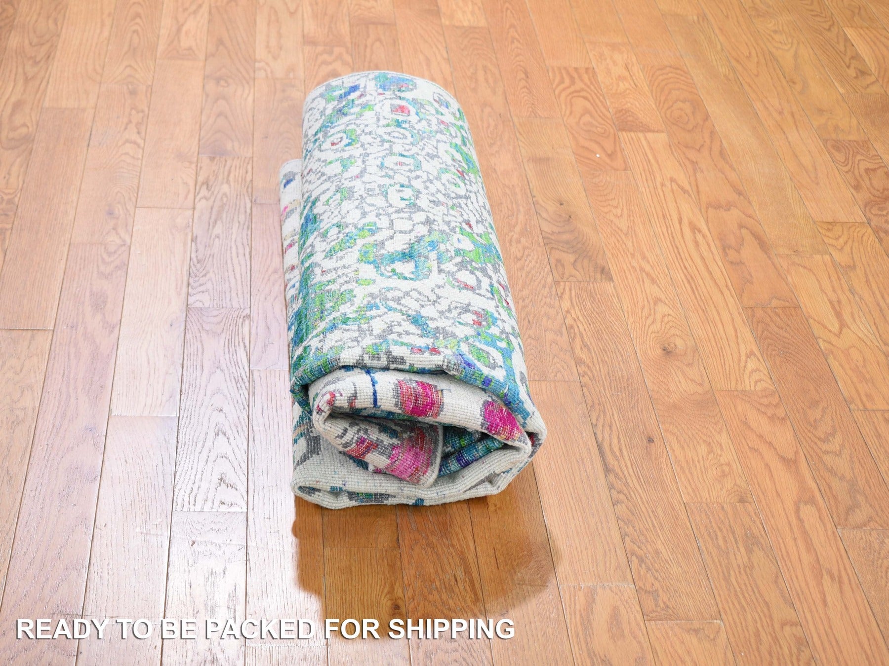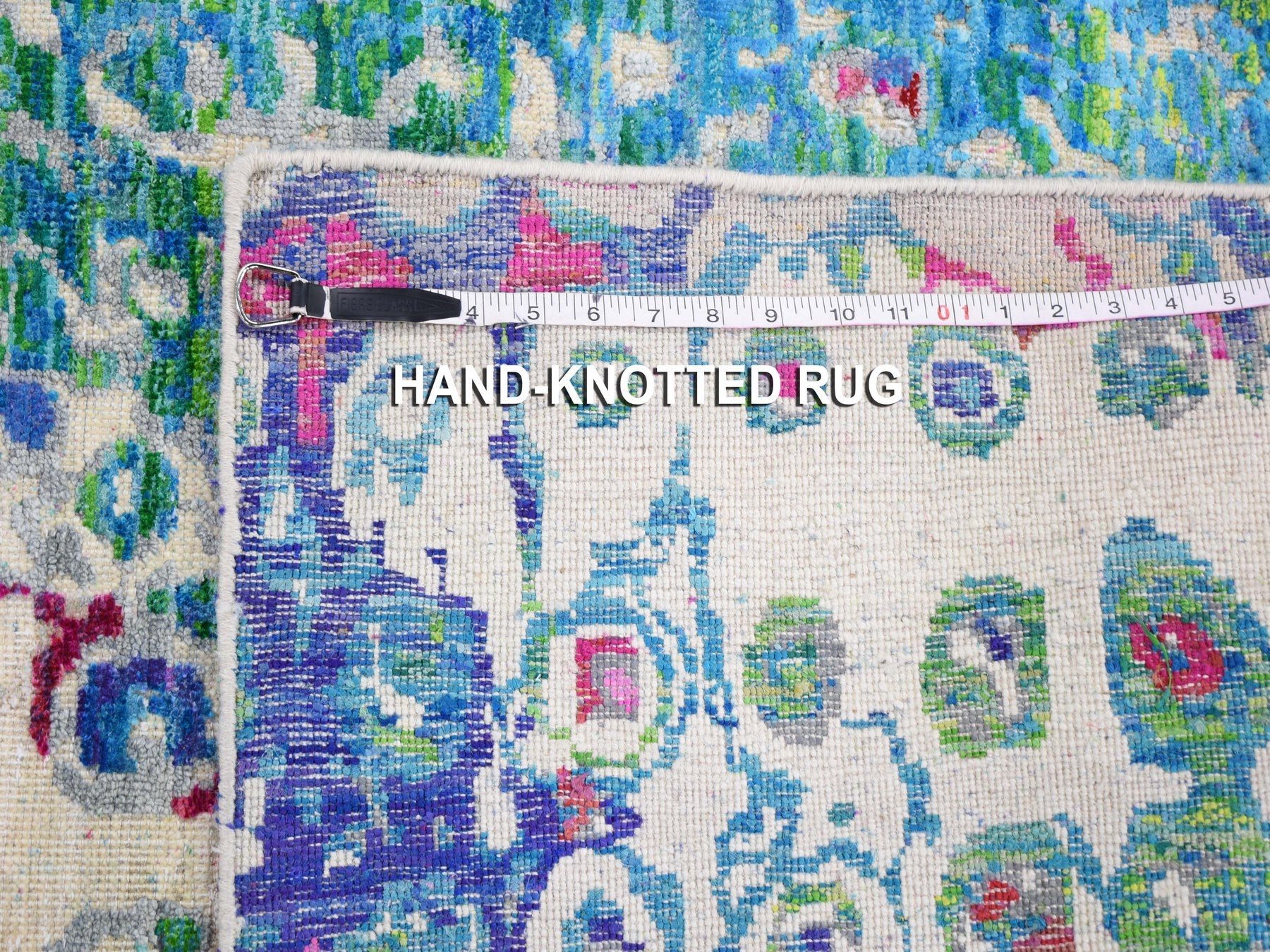 5'0" x 7'3" New Hand Knotted Blue Wool & Sari Silk Rectangle Oriental Rug - MOA10259244