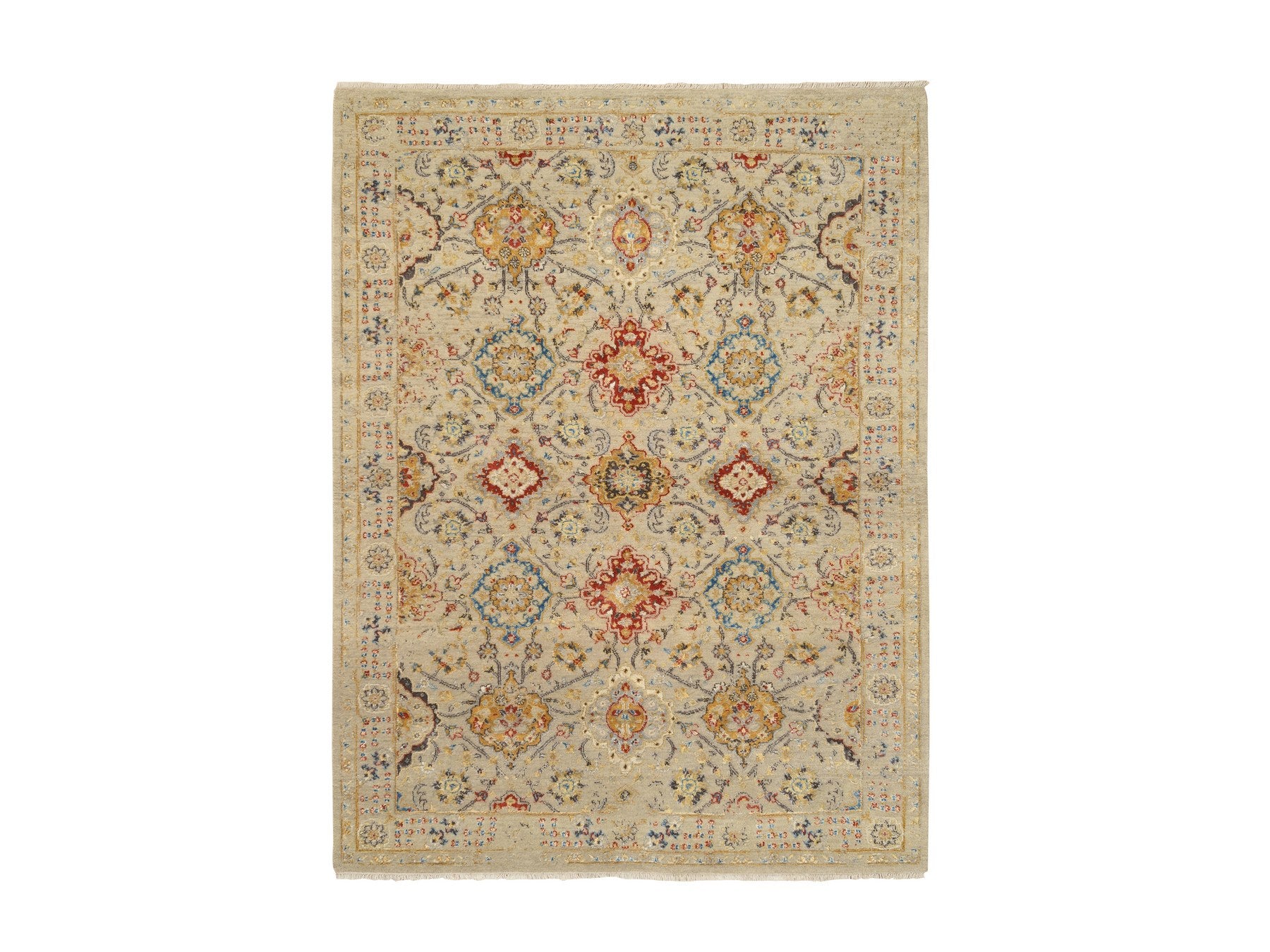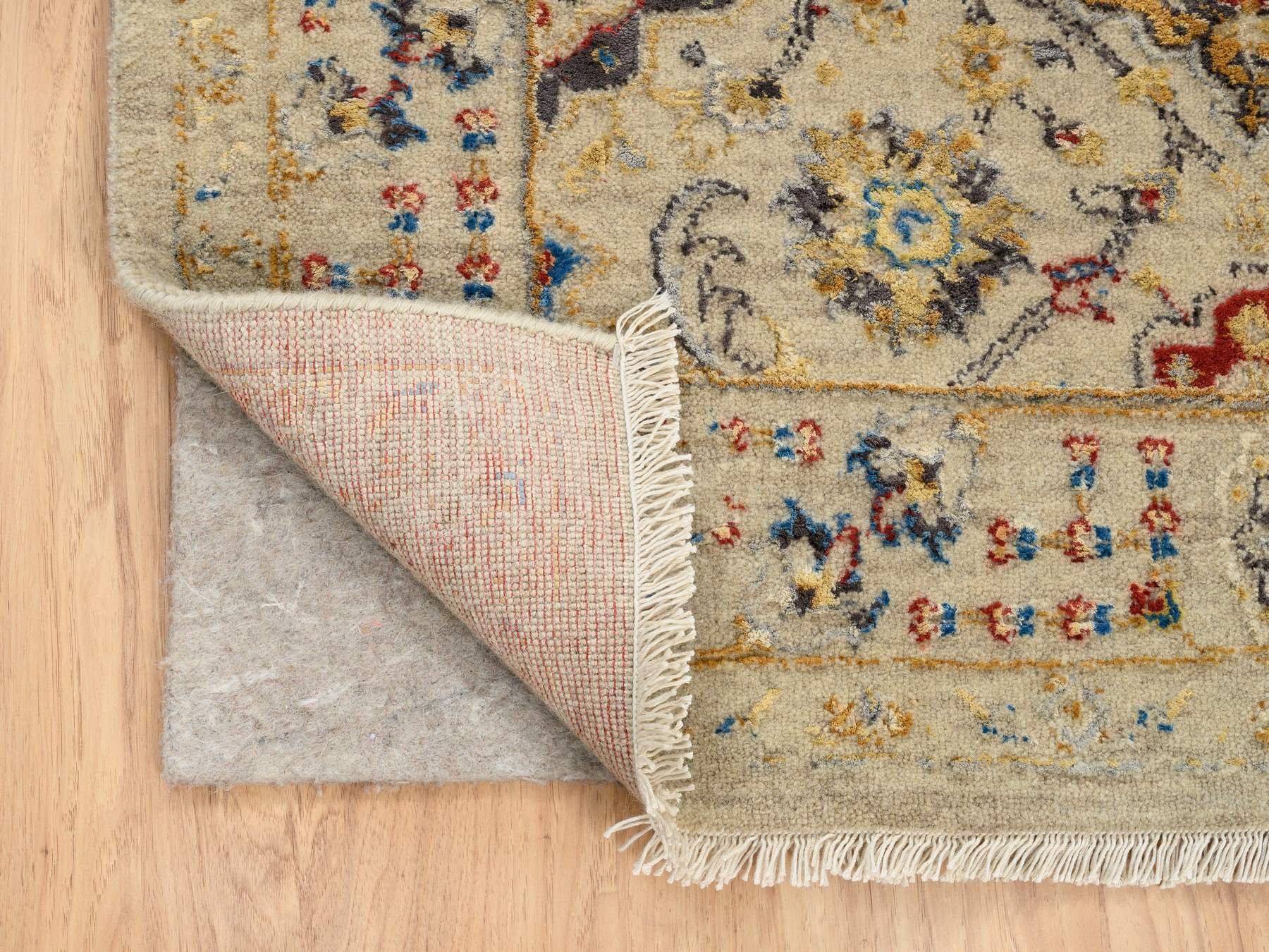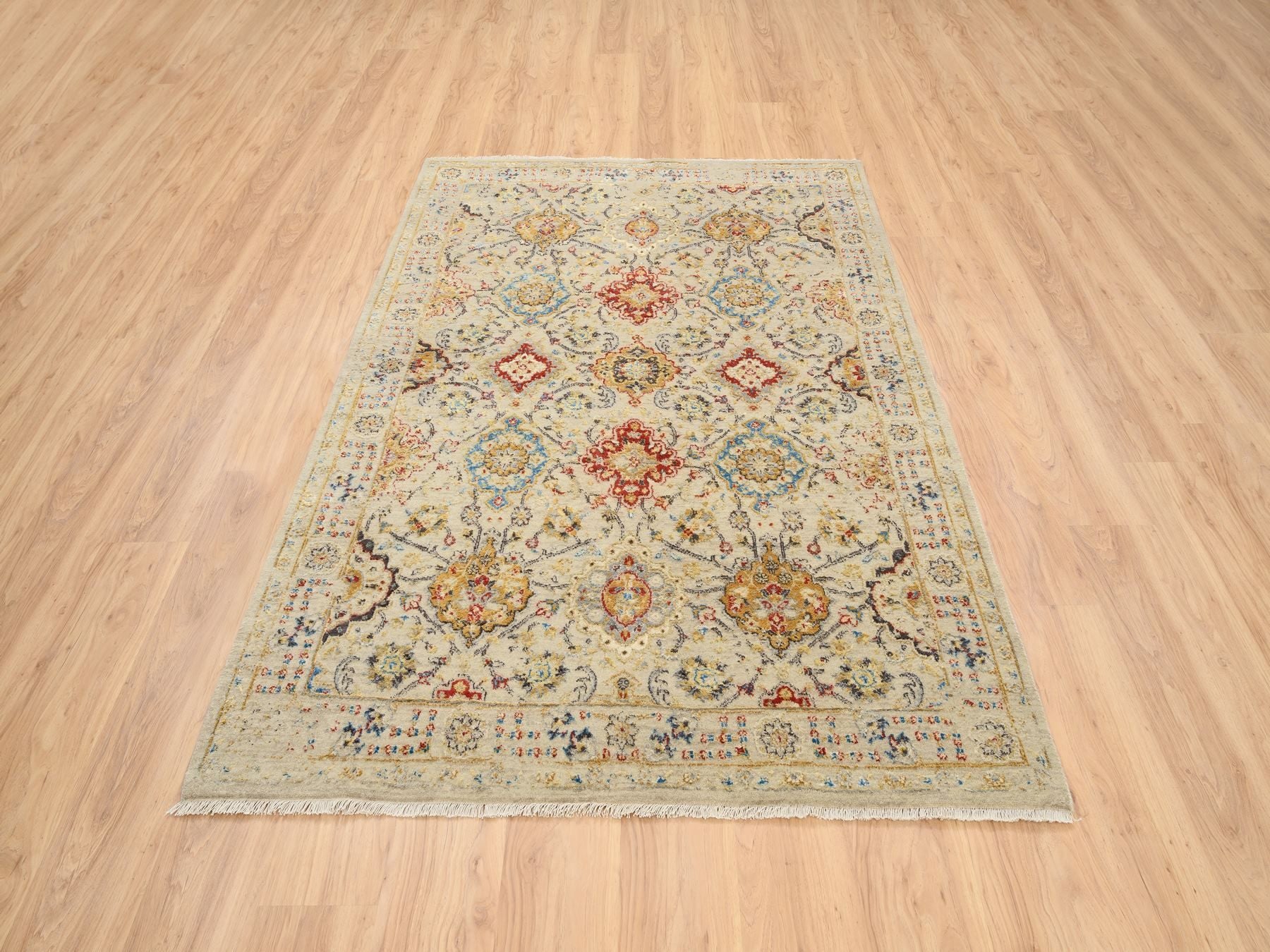 5'3" x 7'0" New Hand Knotted Beige Wool & Pure Silk Rectangle Oriental Rug - MOA10263796