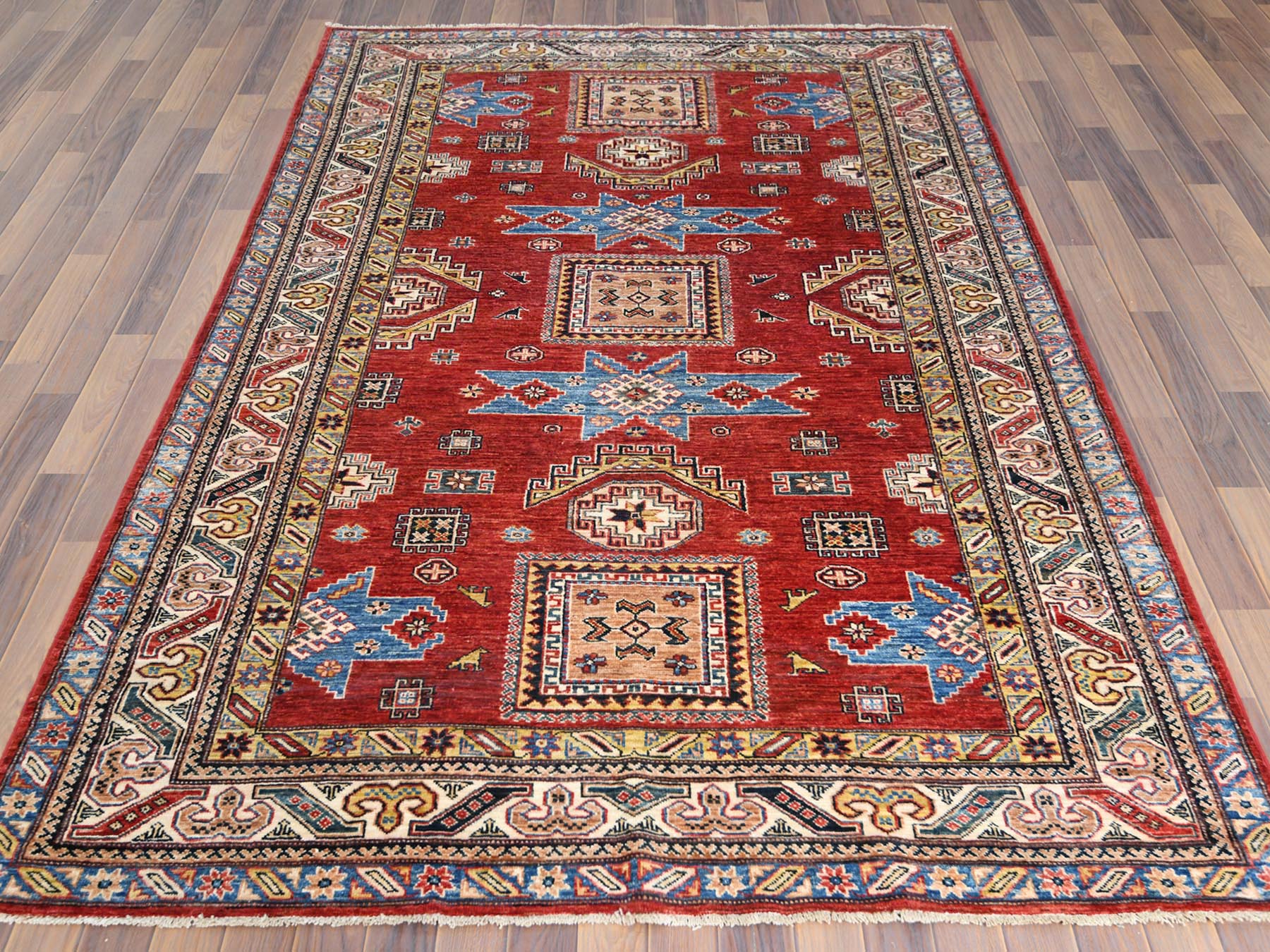 6'0" x 9'0" New Hand Knotted Red Wool Rectangle Oriental Rug - MOA10261657