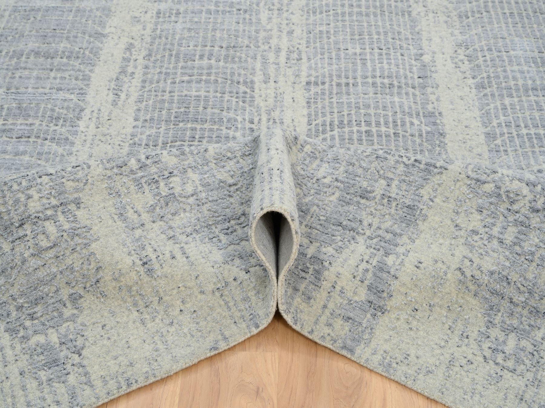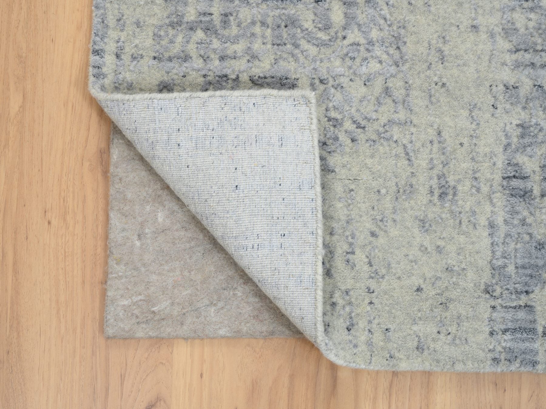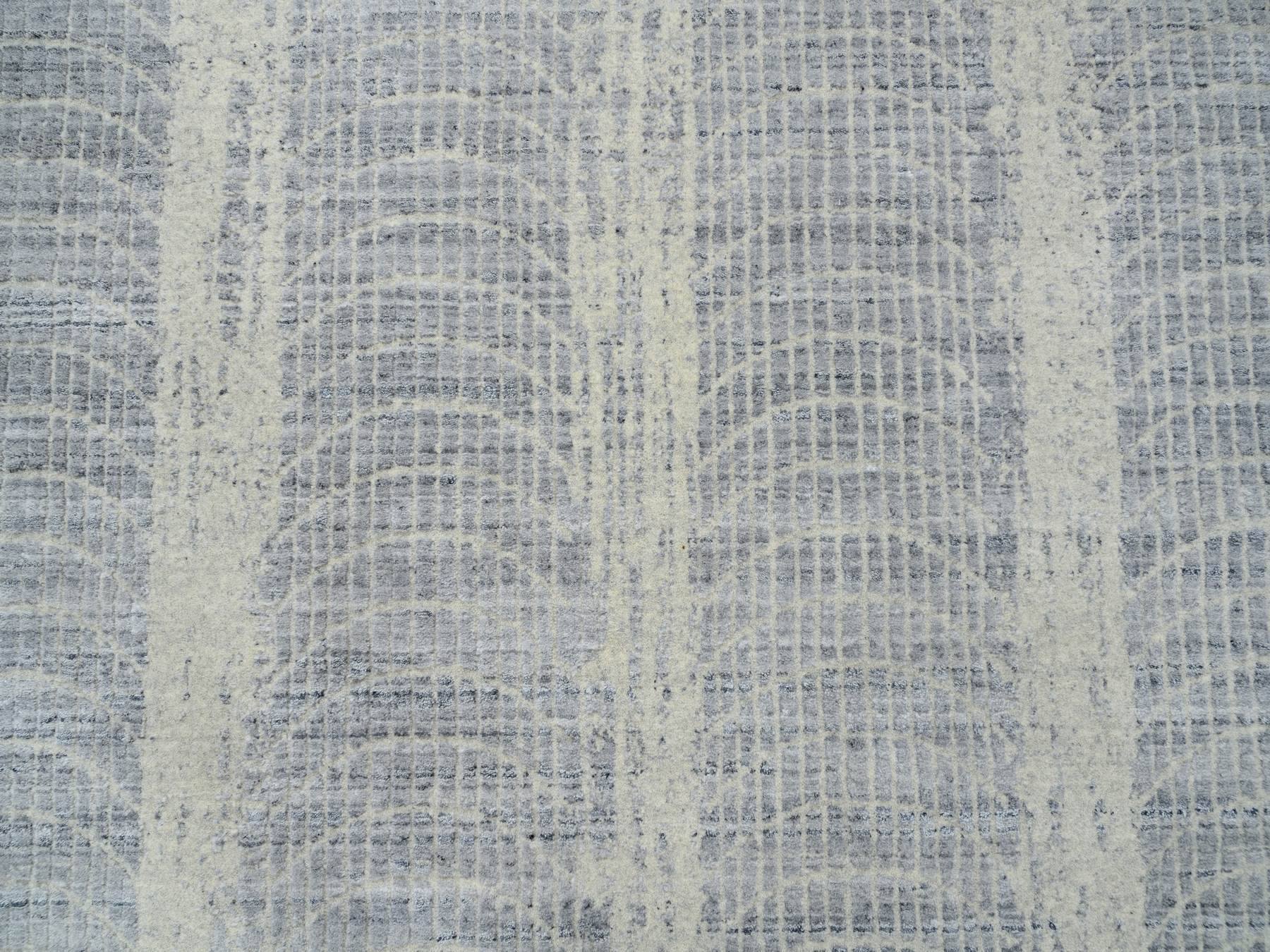 6'0" x 9'0" New Hand Loomed Grey Wool & Silk Rectangle Oriental Rug - MOA10263753