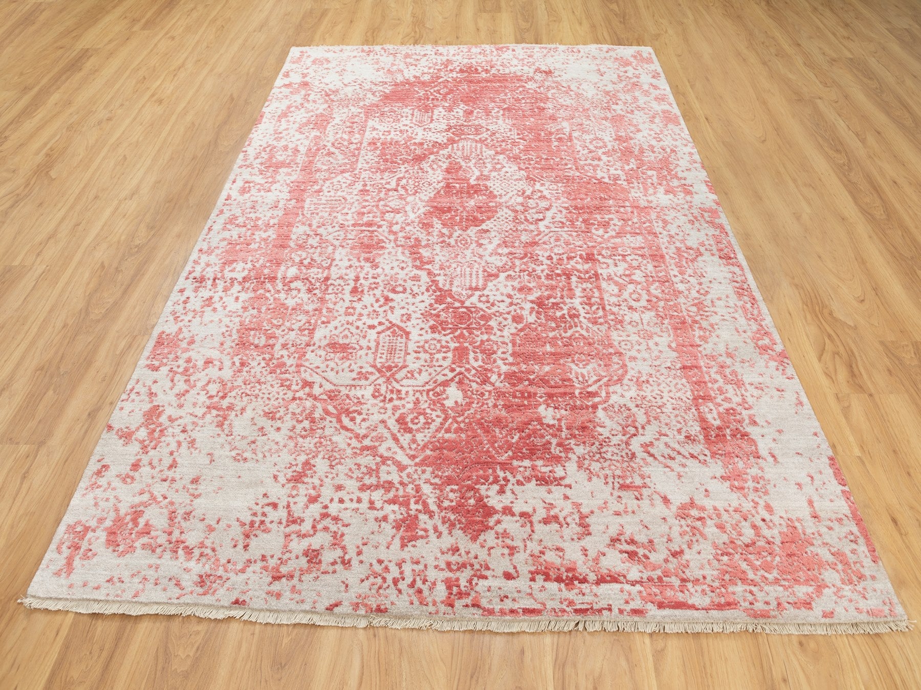 6'0" x 9'2" New Hand Knotted Pink Wool & Pure Silk Rectangle Oriental Rug - MOA10262069