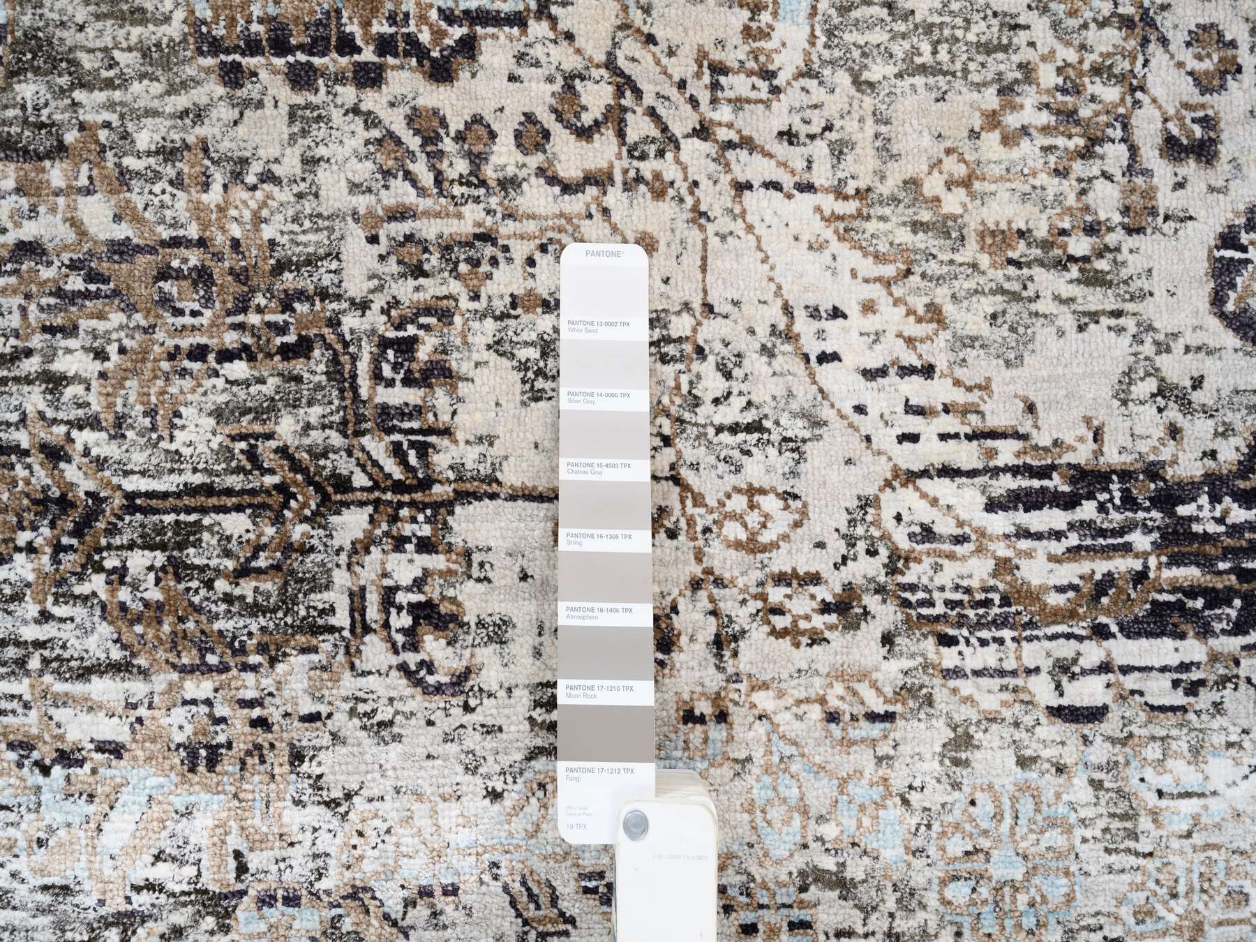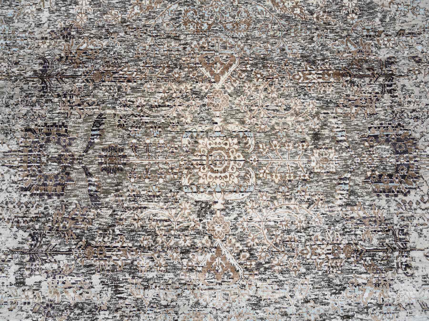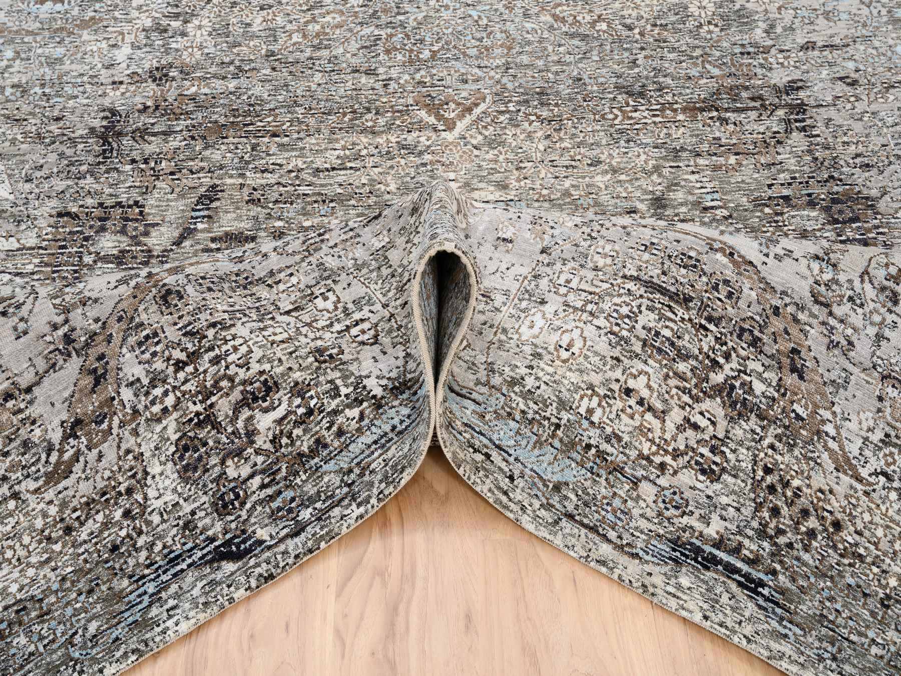 8'0" x 8'1" New Hand Knotted Grey Wool & Silk Square Oriental Rug - MOA10263684