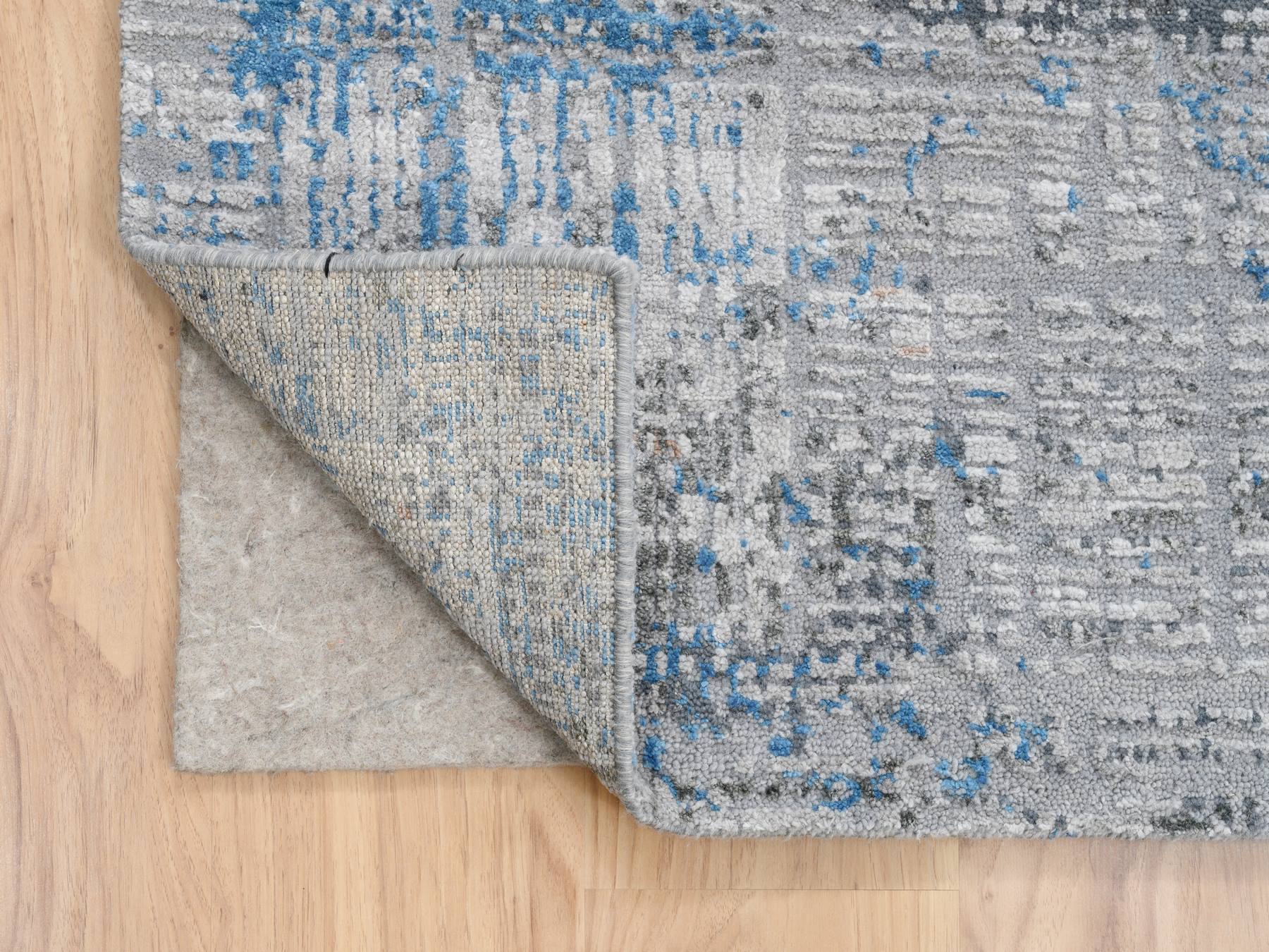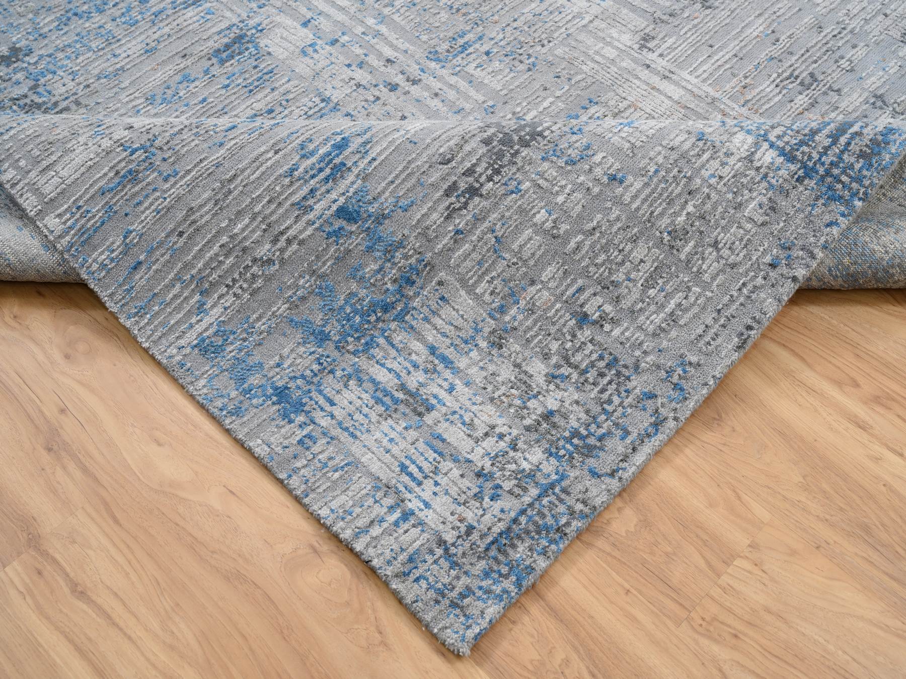 9'1" x 12'1" New Hand Knotted Grey Wool & Silk Rectangle Oriental Rug - MOA10264178