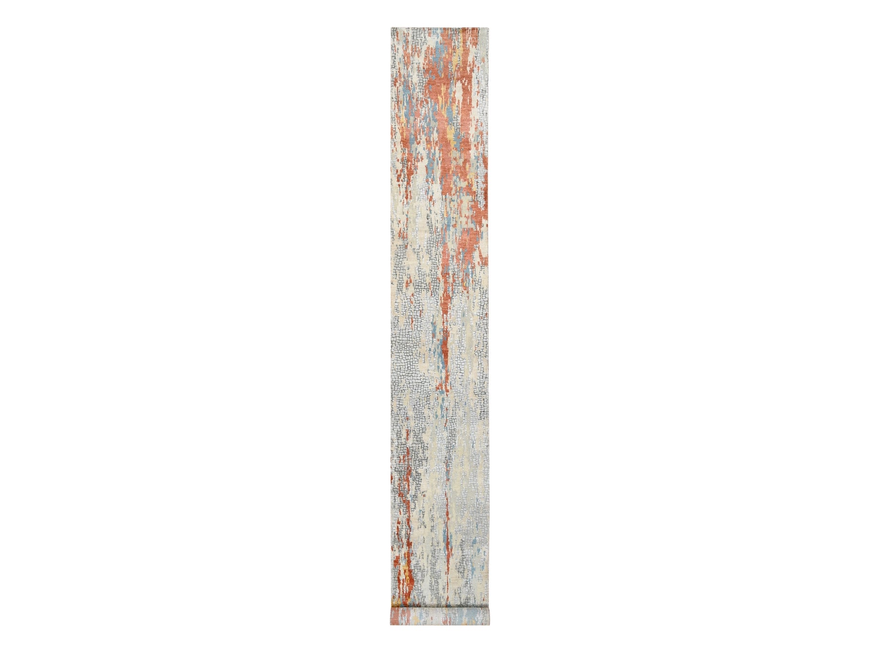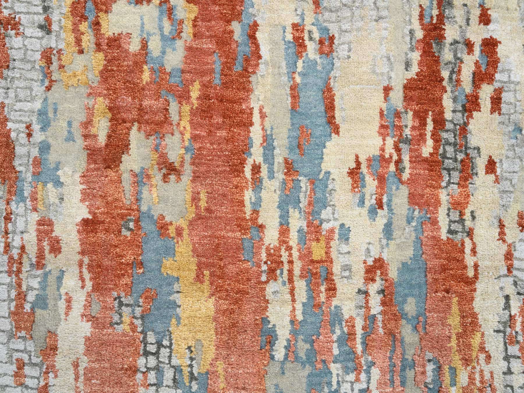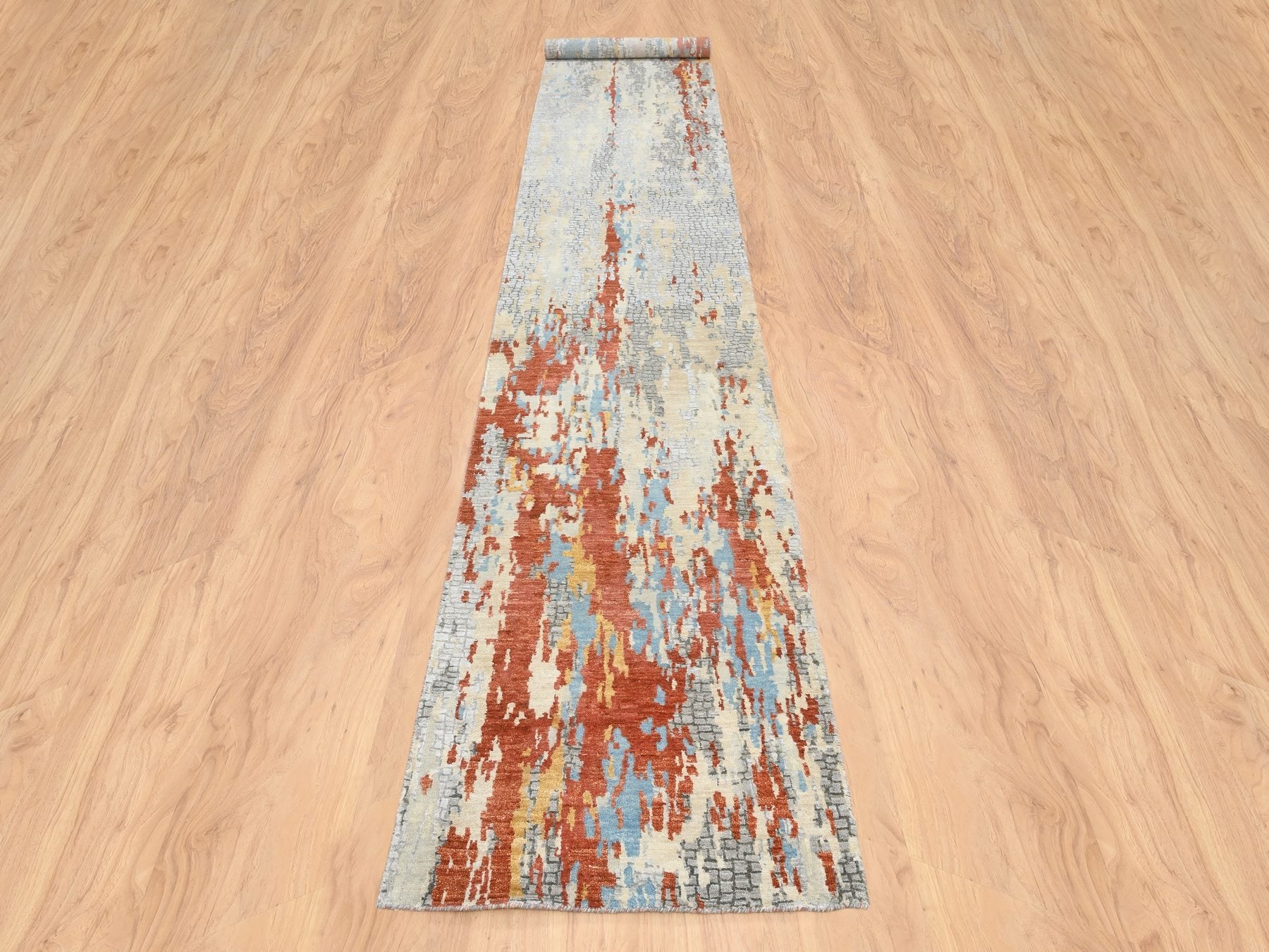 2'6" x 17'8" New Hand Knotted Orange Wool & Silk Runner Oriental Rug - MOA10264539