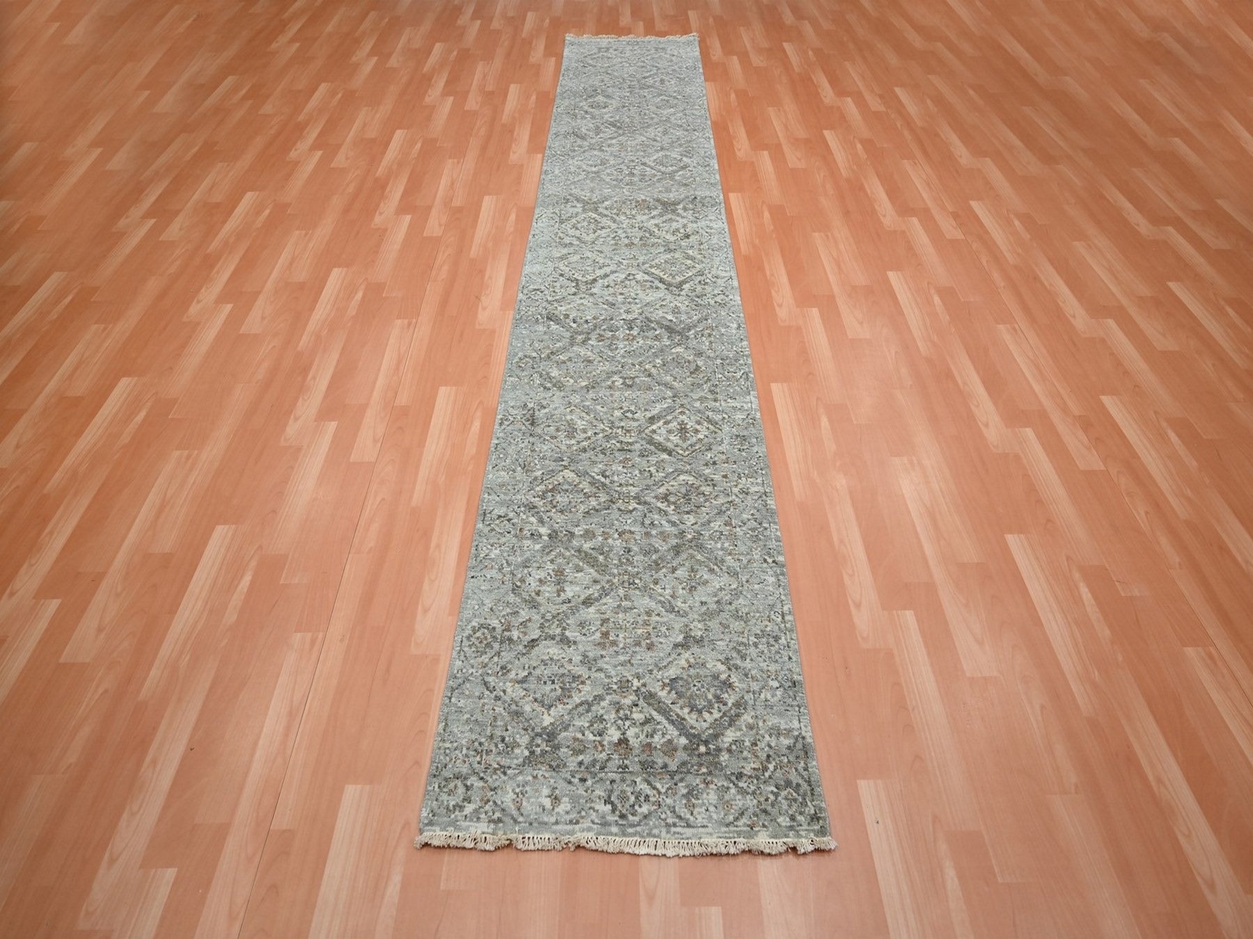 2'5" x 12'0" New Hand Knotted Grey Wool Runner Oriental Rug - MOA10275753