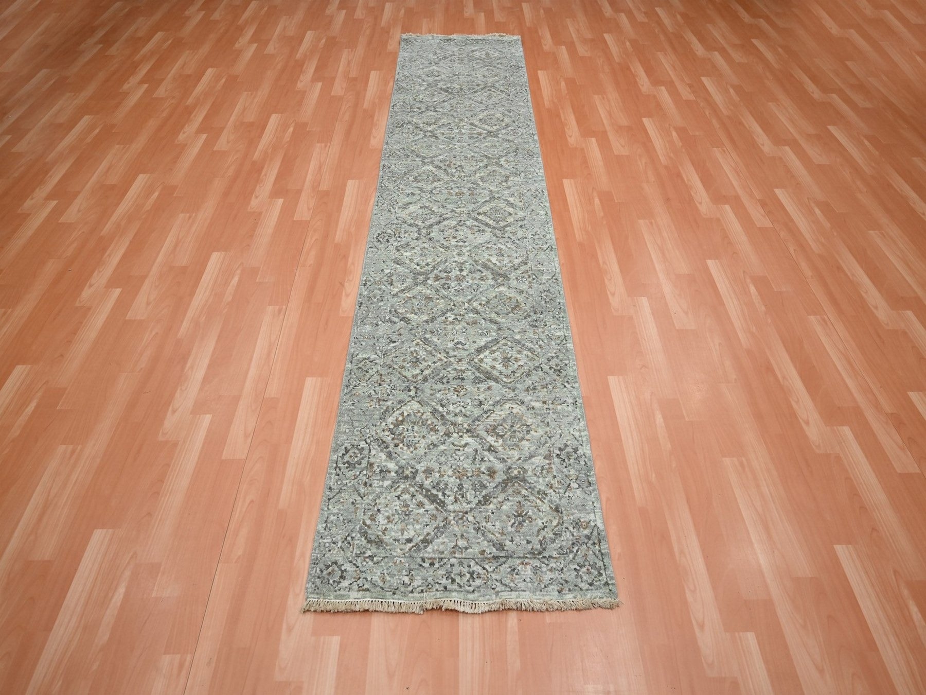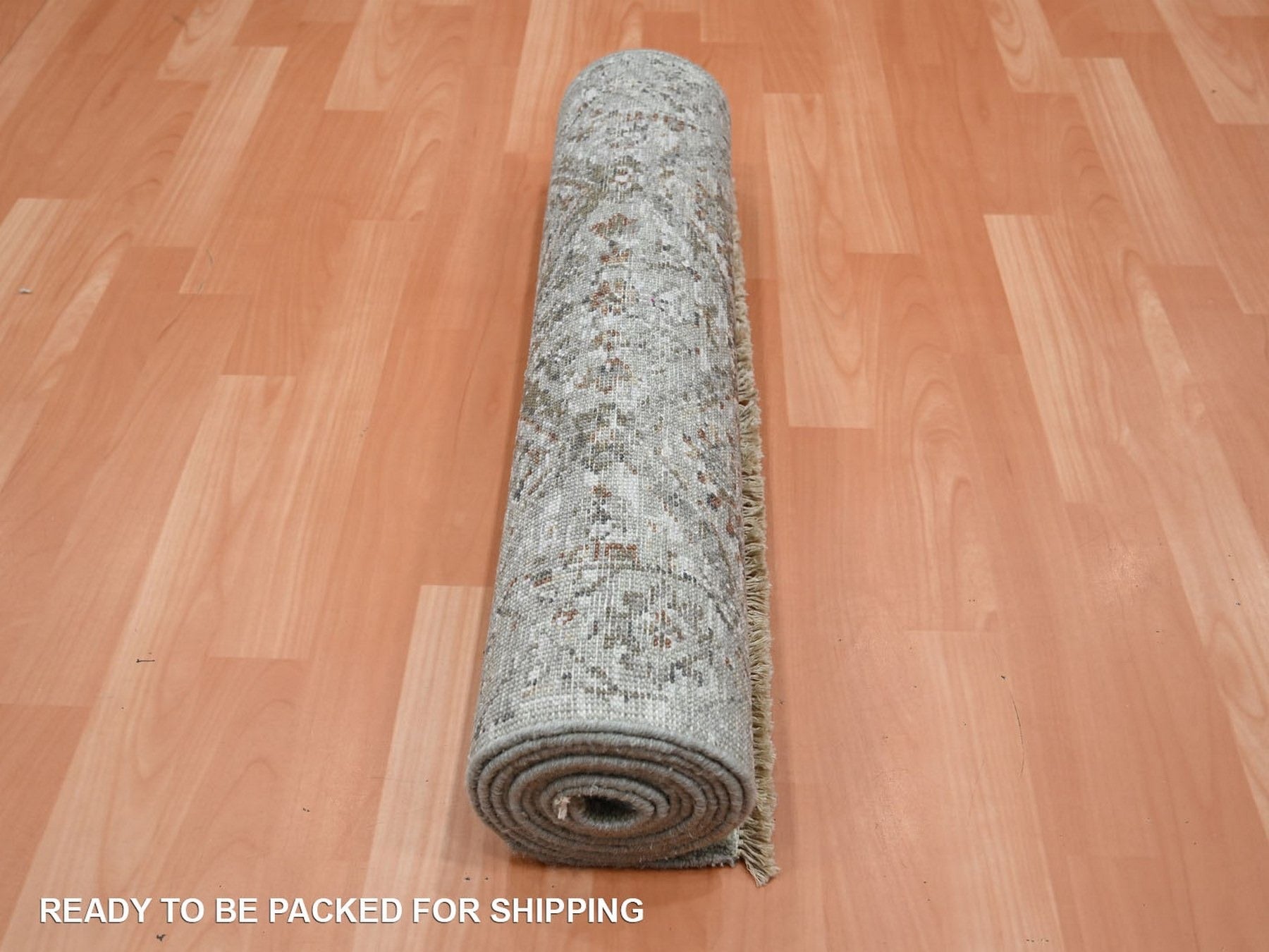 2'5" x 9'11" New Hand Knotted Grey Wool Runner Oriental Rug - MOA10275754