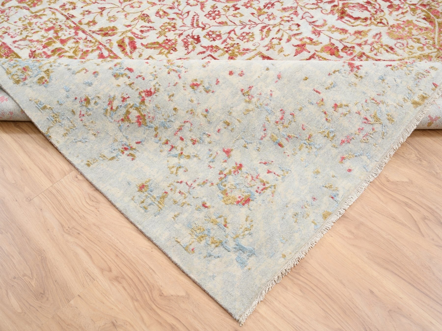12'1" x 15'0" New Hand Knotted Pink Wool & Silk Rectangle Oriental Rug - MOA10263304