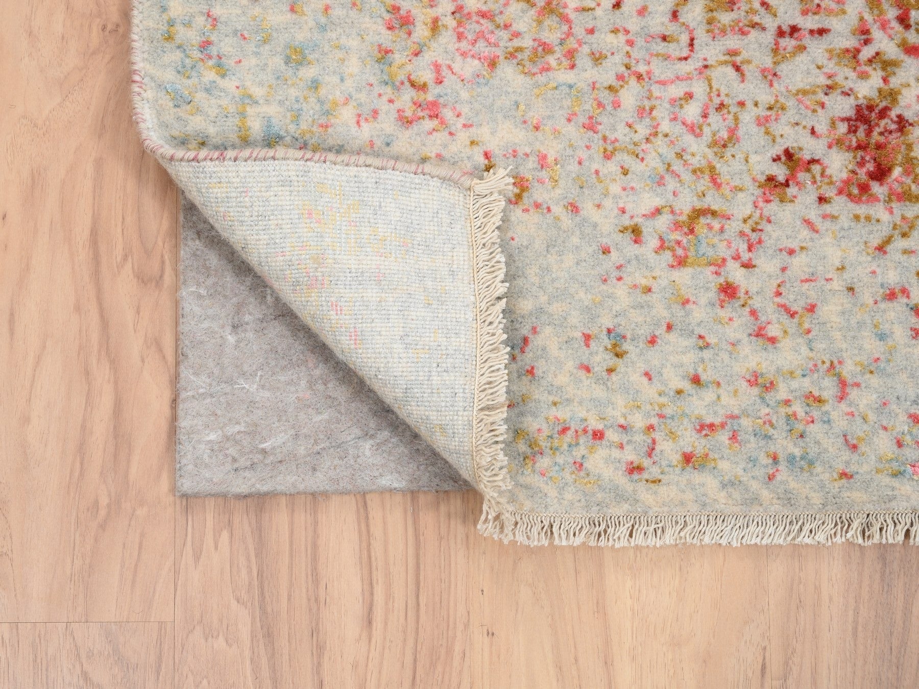 4'2" x 10'0" New Hand Knotted Pink Wool & Silk Runner Oriental Rug - MOA10263190