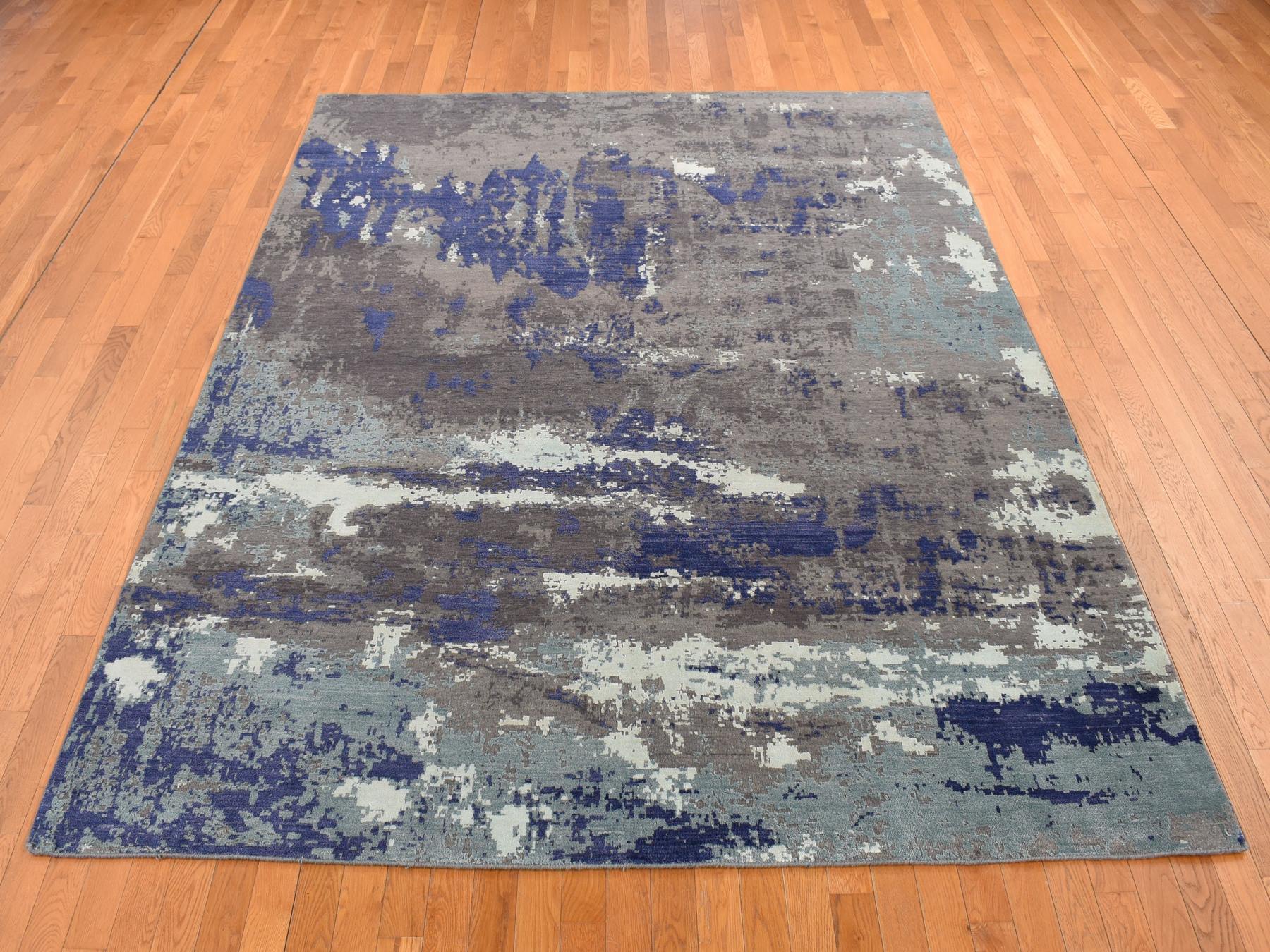7'10" x 10'0" New Hand Knotted Purple Wool & Silk Rectangle Oriental Rug - MOA10287045