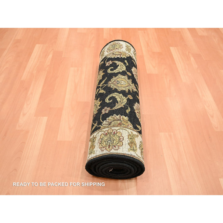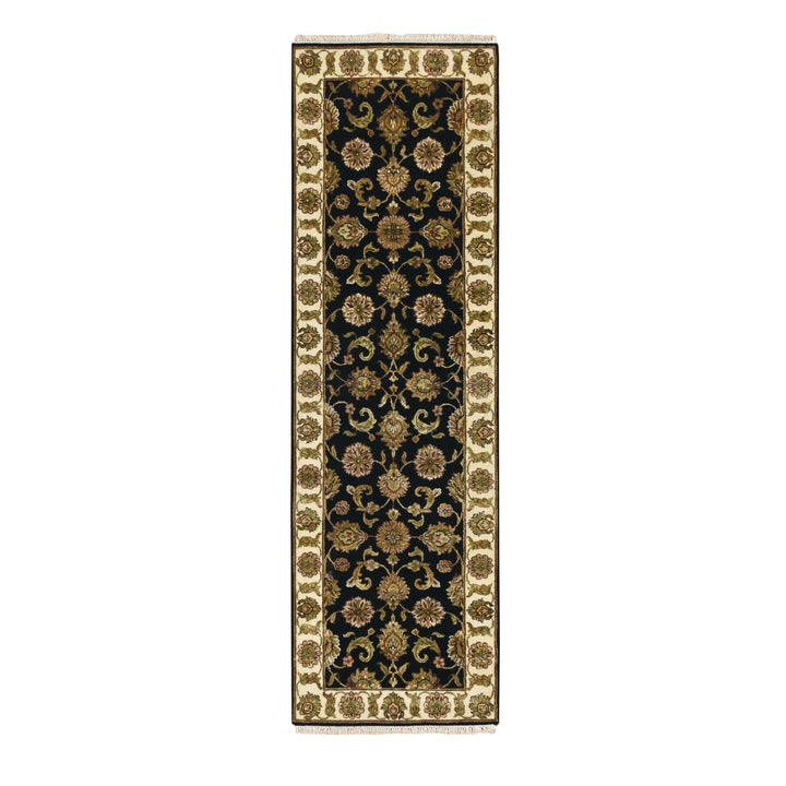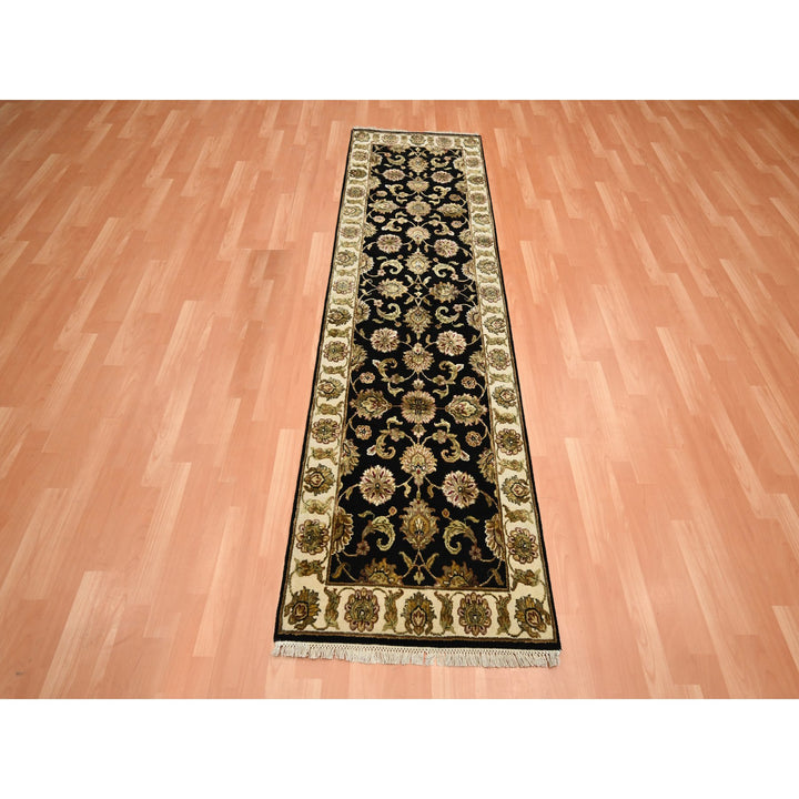 2'6" x 8'3" New Hand Knotted Black Wool & Silk Runner Oriental Rug - MOA10275618
