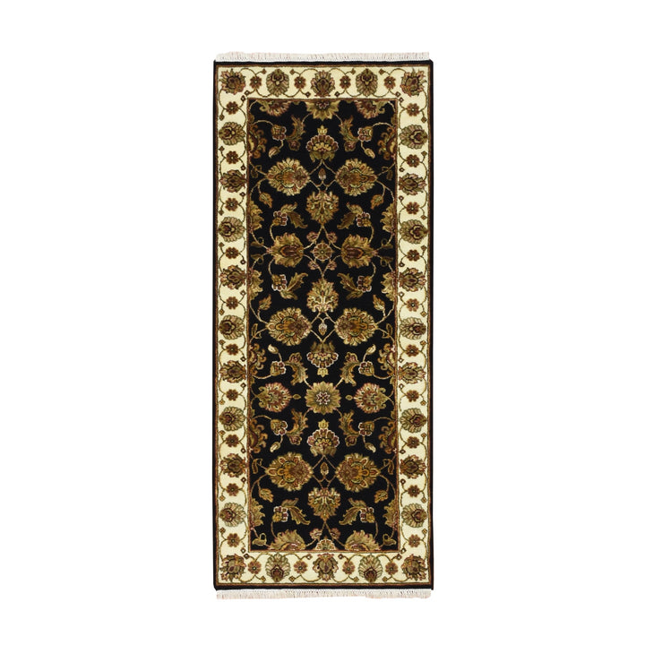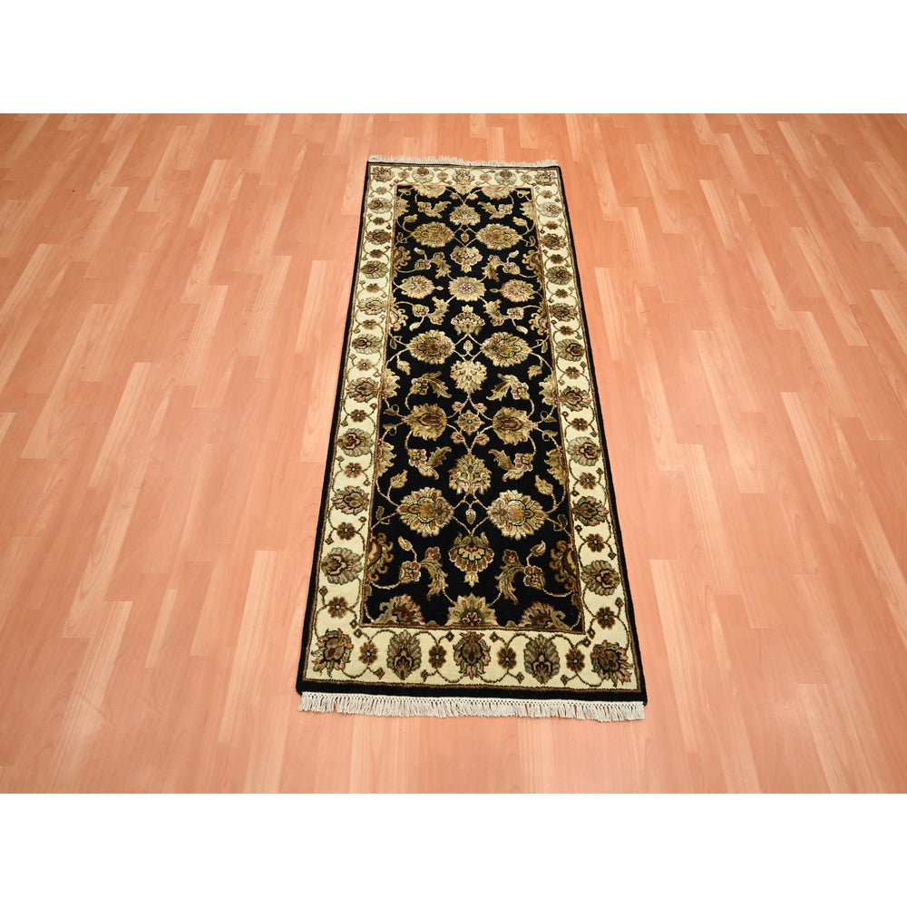 2'7" x 6'2" New Hand Knotted Black Wool & Silk Runner Oriental Rug - MOA10275625