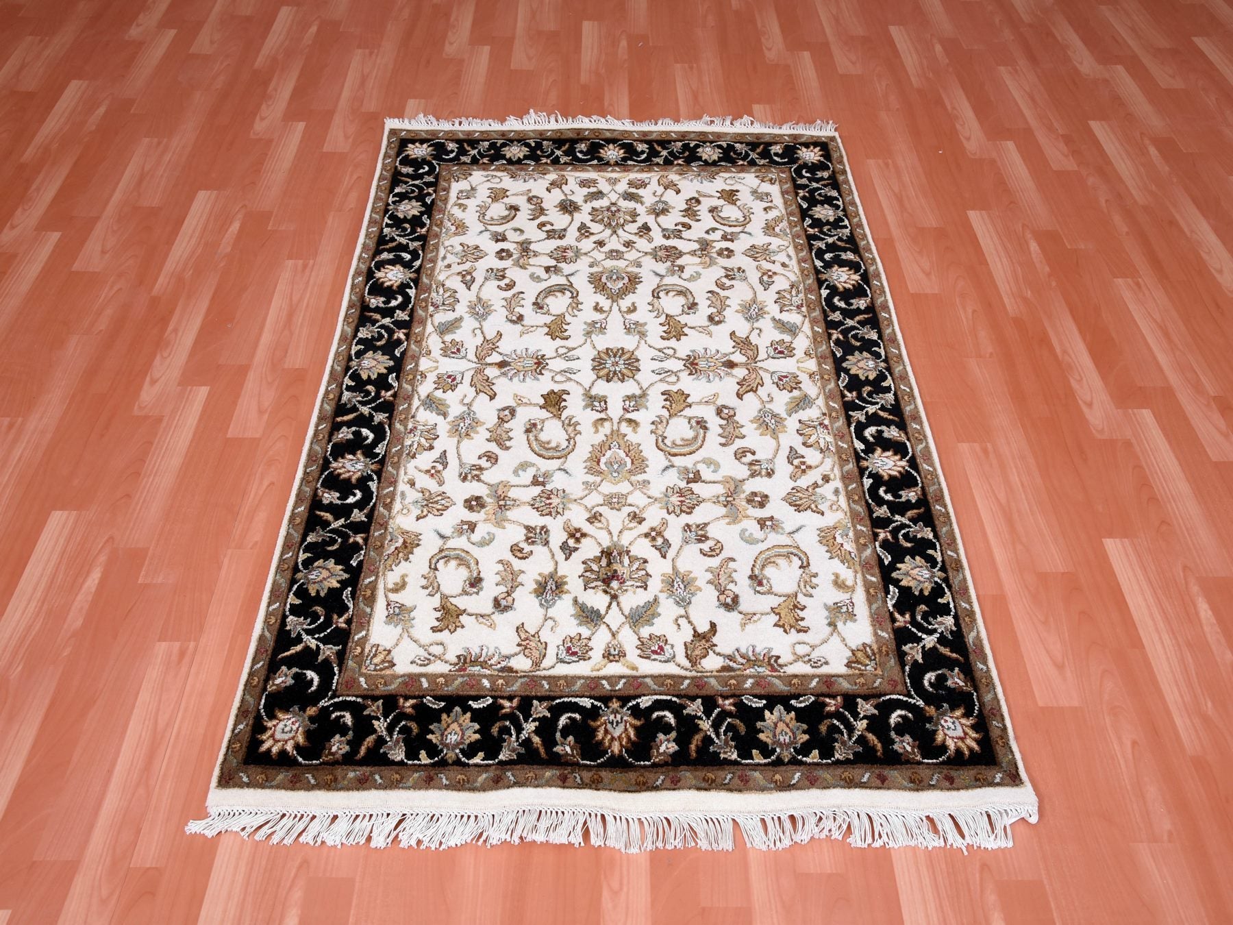 4'1" x 6'0" New Hand Knotted Ivory Wool & Silk Rectangle Oriental Rug - MOA10275046