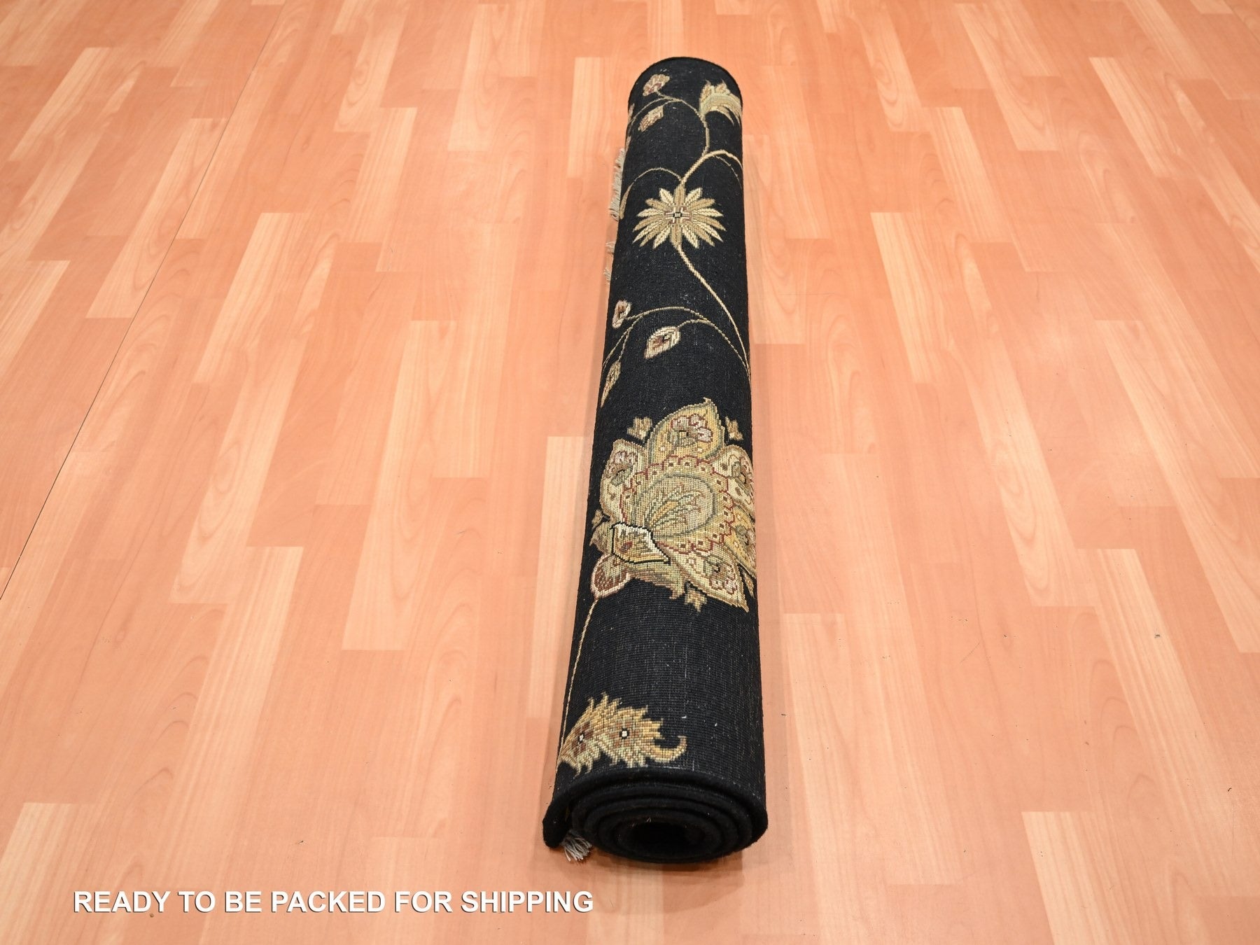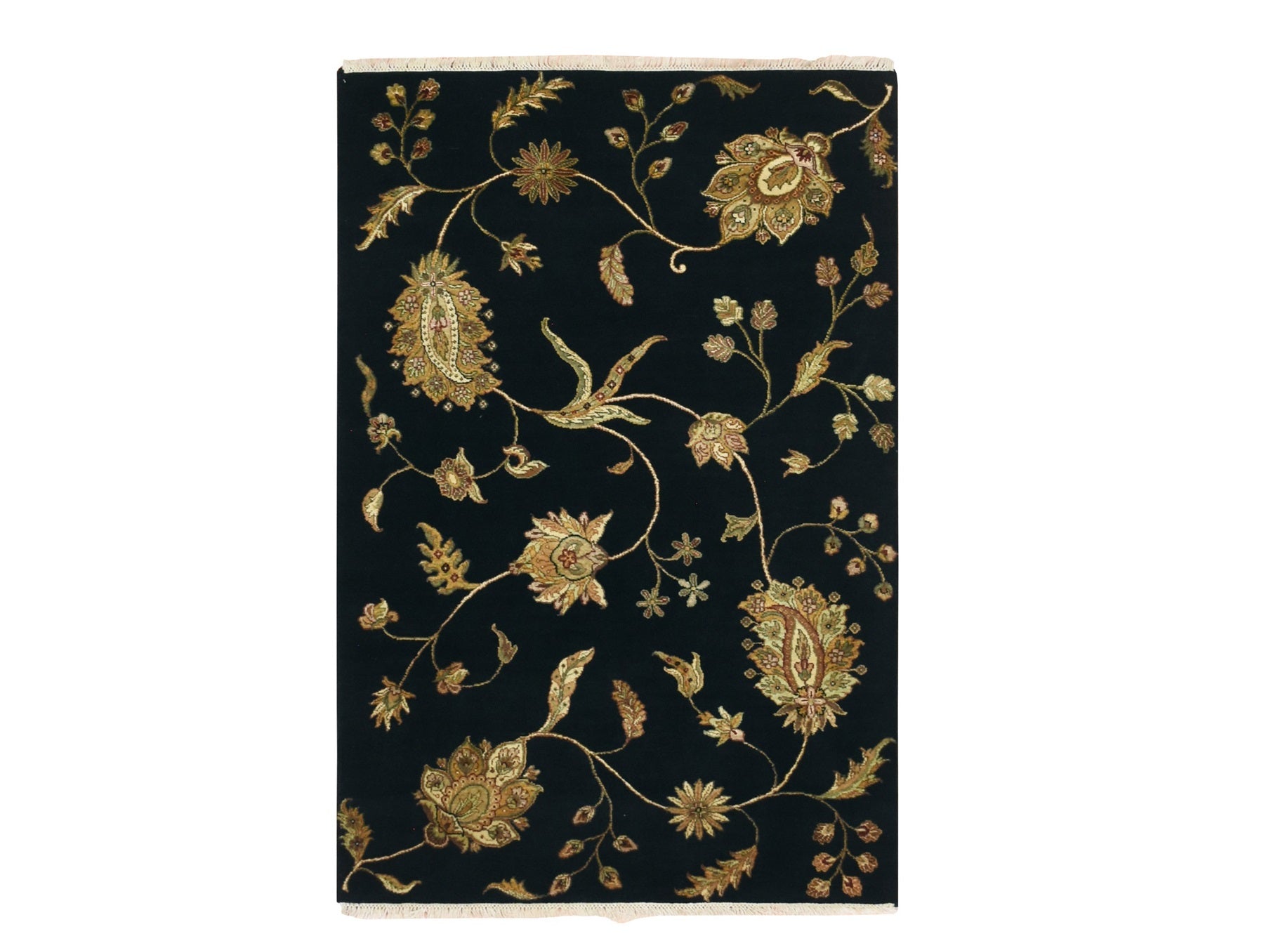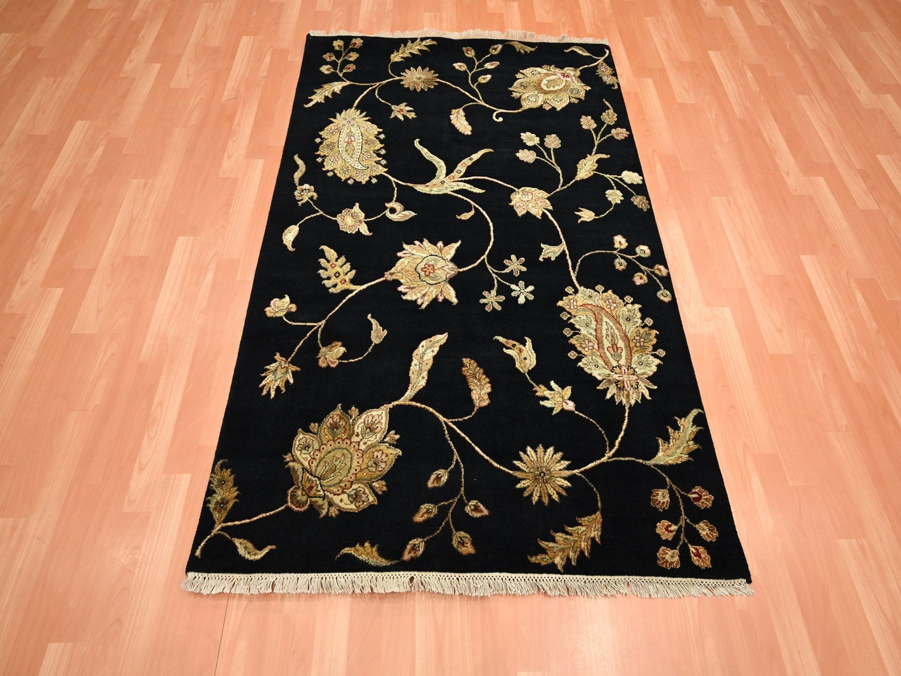 4'1" x 6'1" New Hand Knotted Black Wool & Silk Rectangle Oriental Rug - MOA10275608