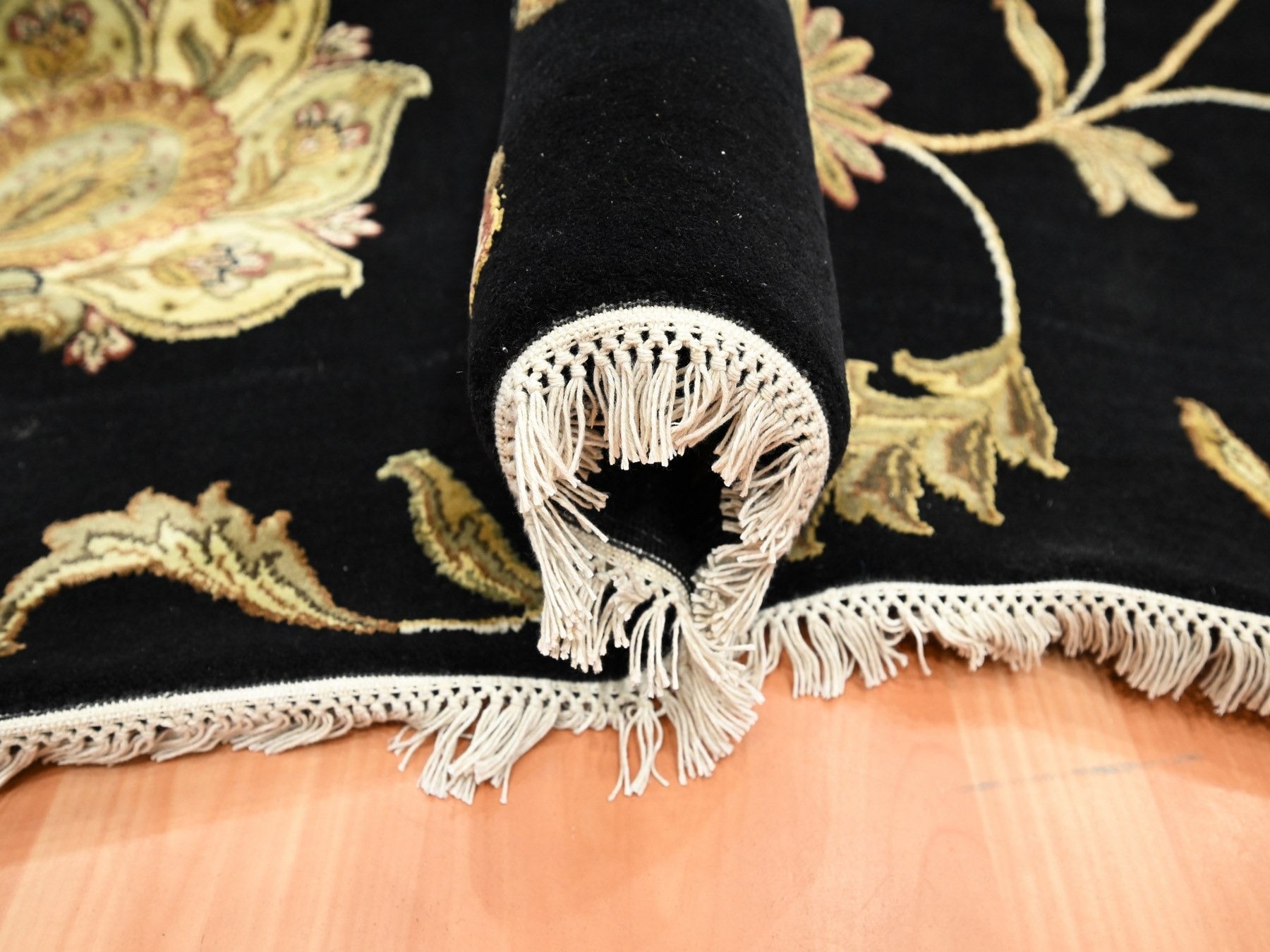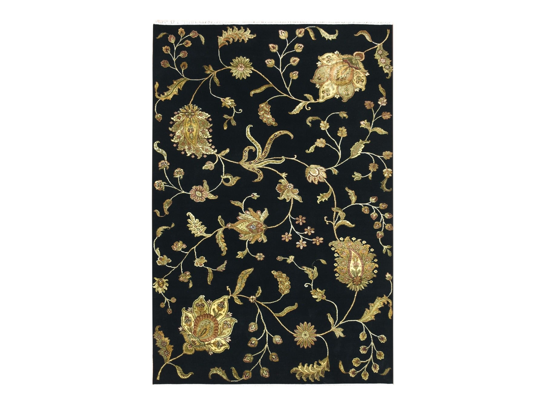 6'0" x 8'10" New Hand Knotted Black Wool & Silk Rectangle Oriental Rug - MOA10275602