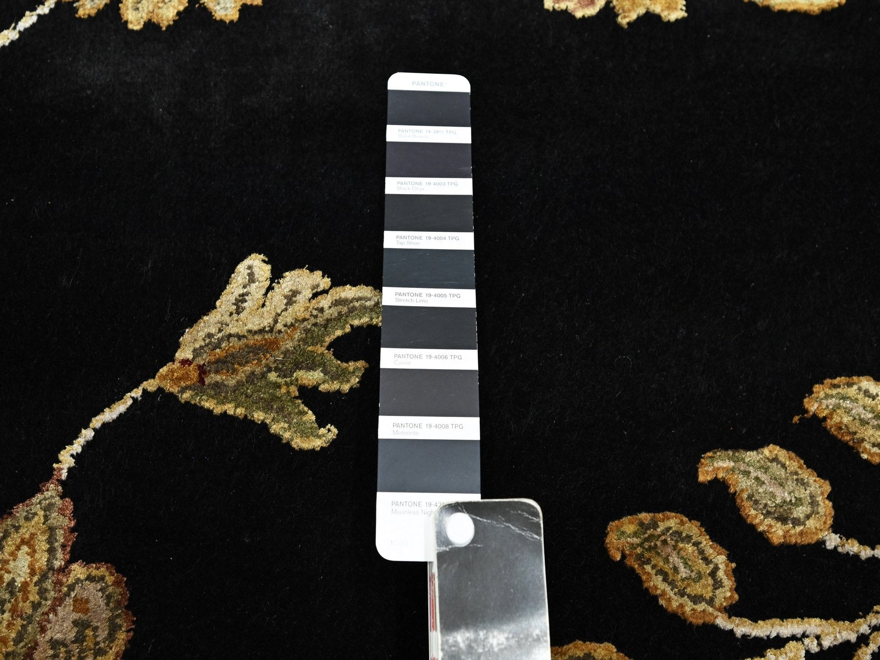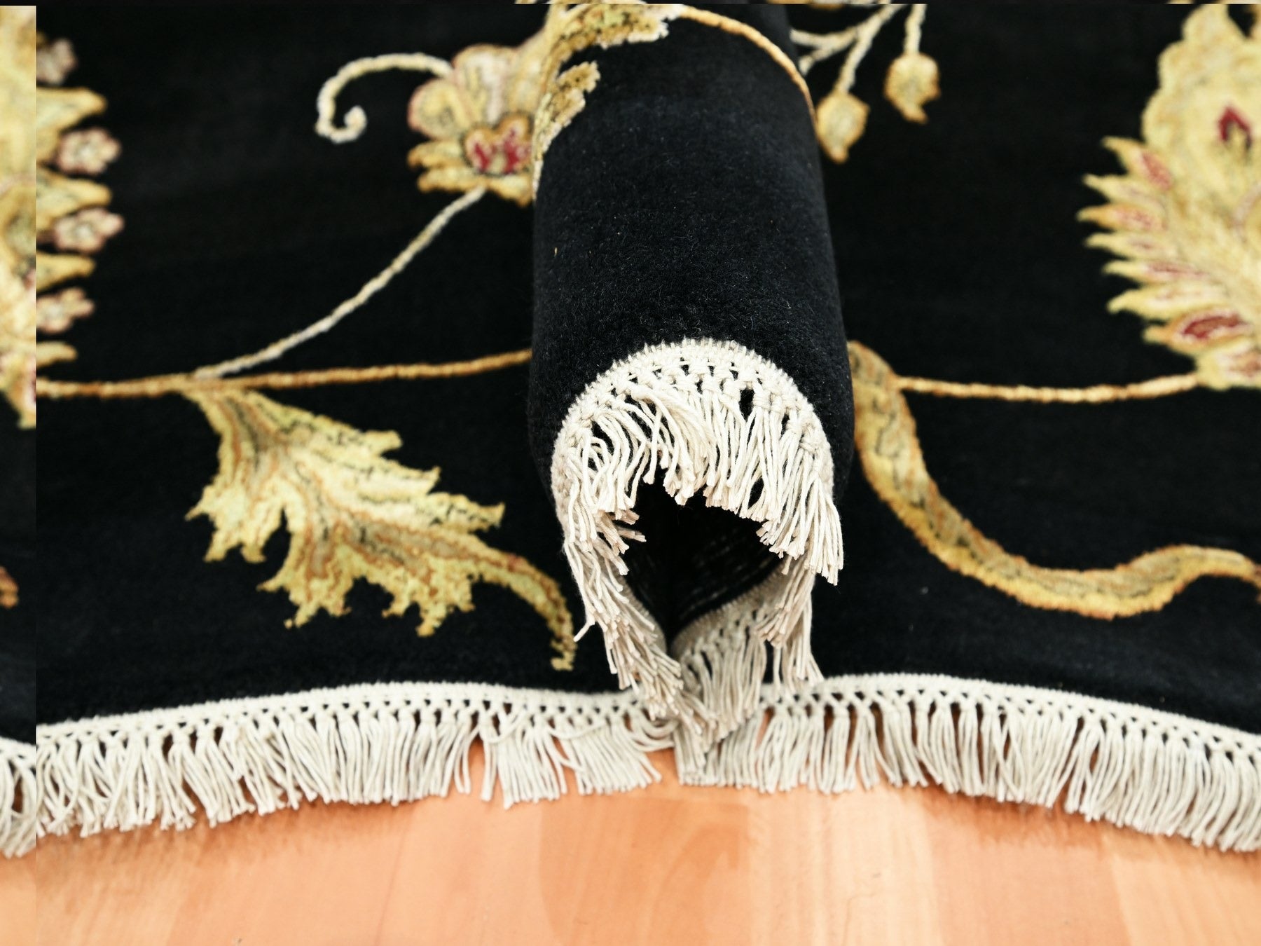 8'2" x 9'11" New Hand Knotted Black Wool & Silk Rectangle Oriental Rug - MOA10275580