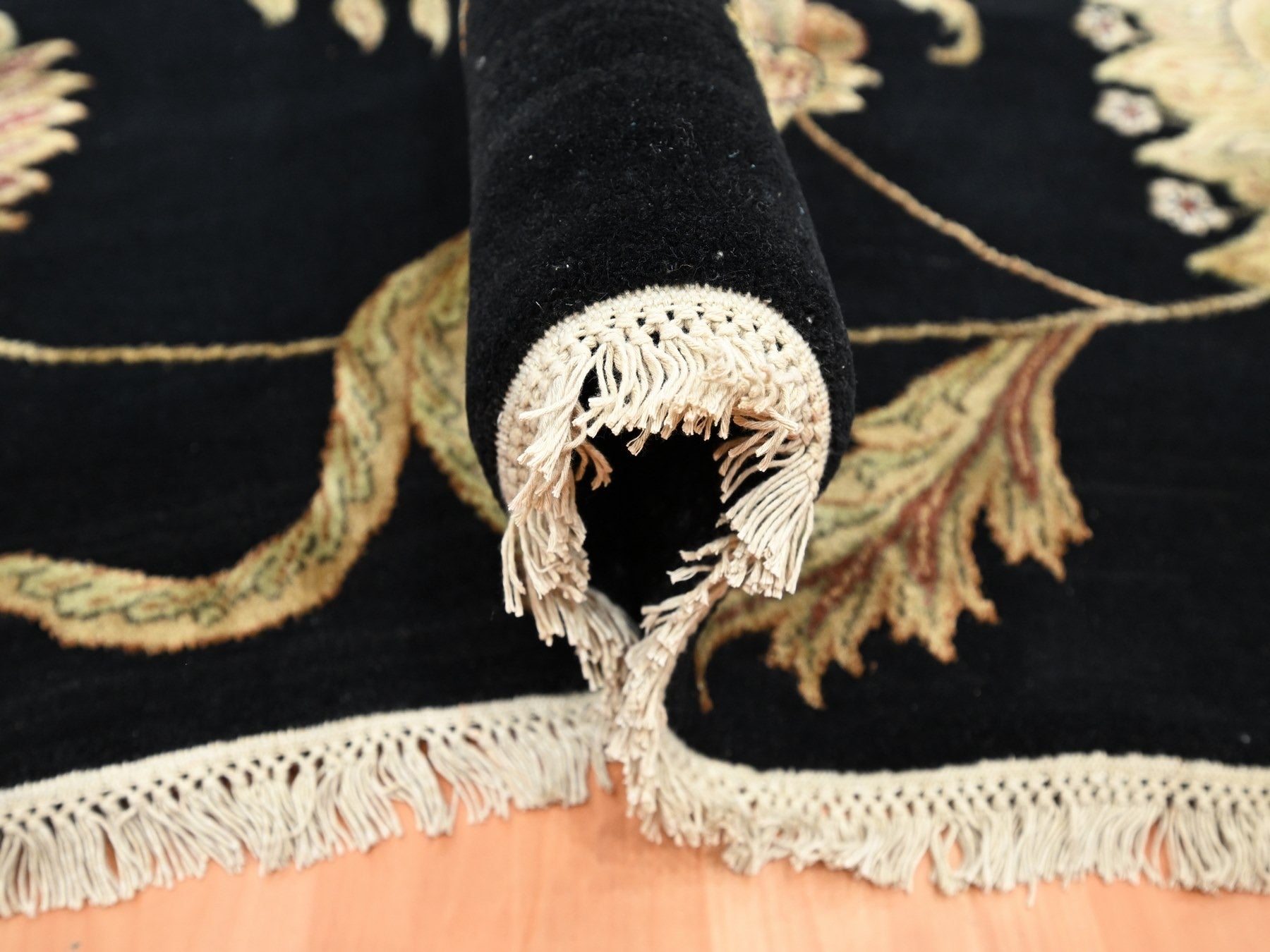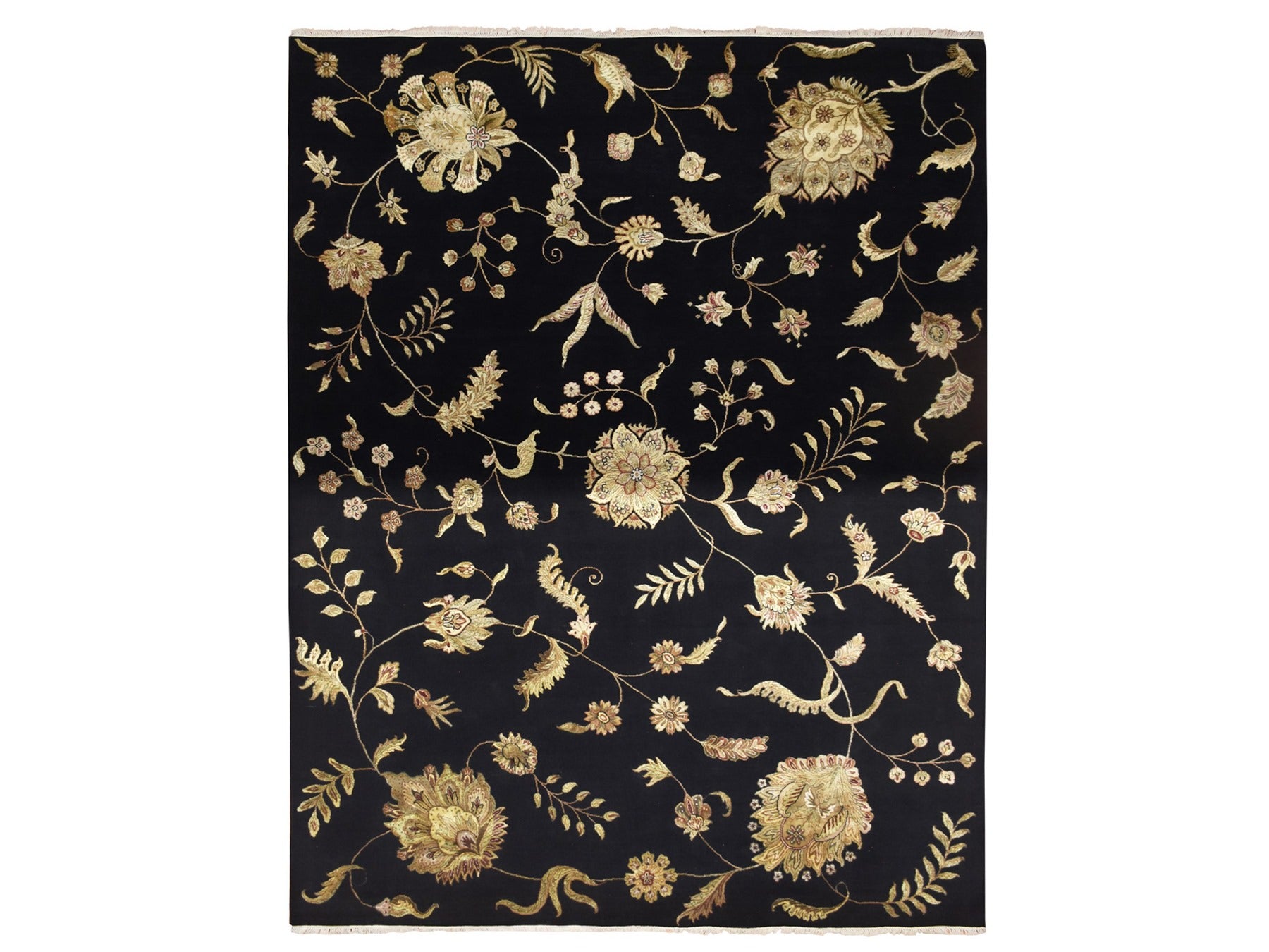 9'2" x 11'8" New Hand Knotted Black Wool & Silk Rectangle Oriental Rug - MOA10275593