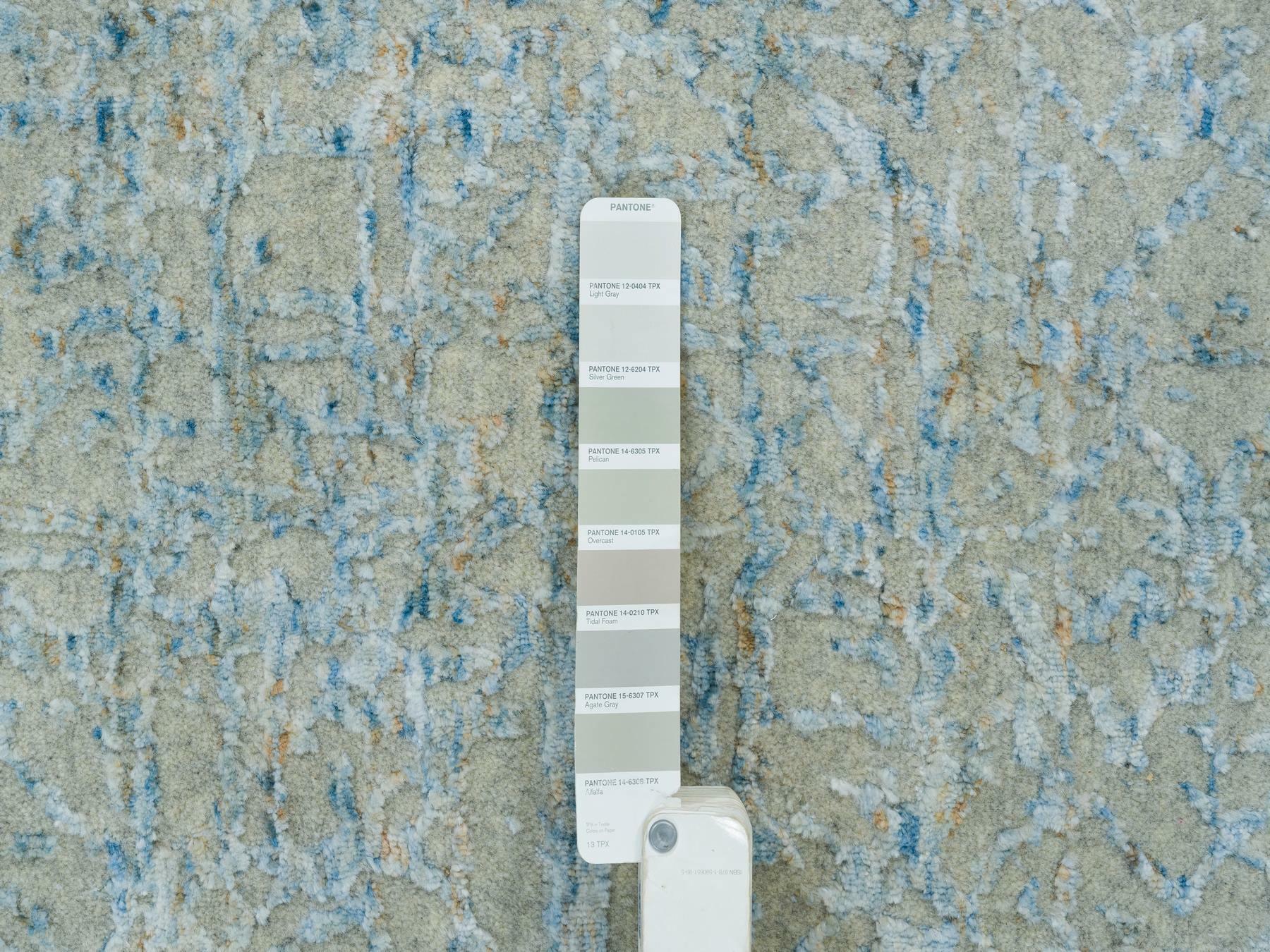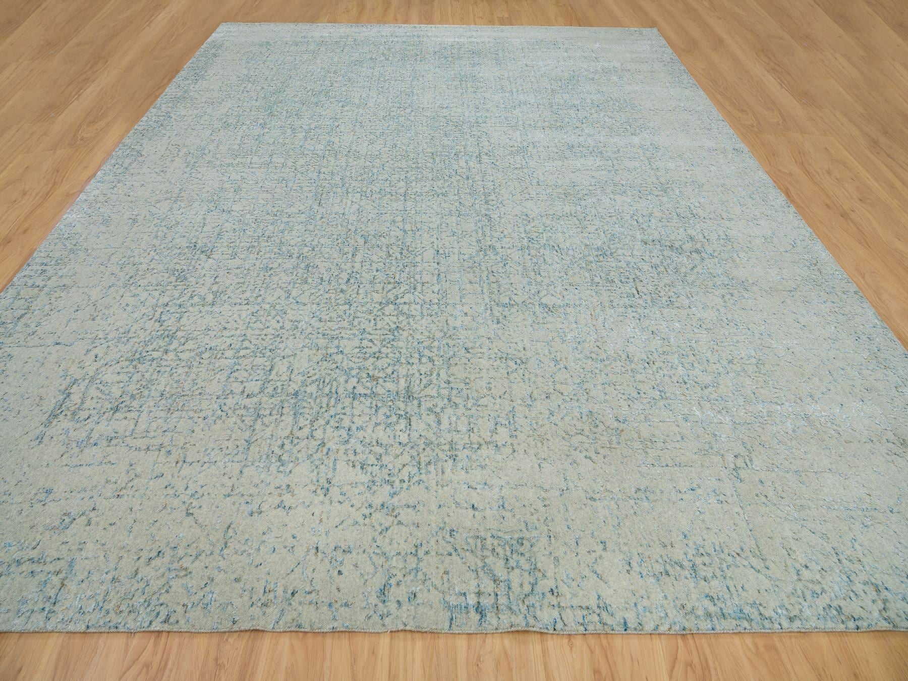12'0" x 14'9" New Hand Loomed Grey Wool & Silk Rectangle Oriental Rug - MOA10265211