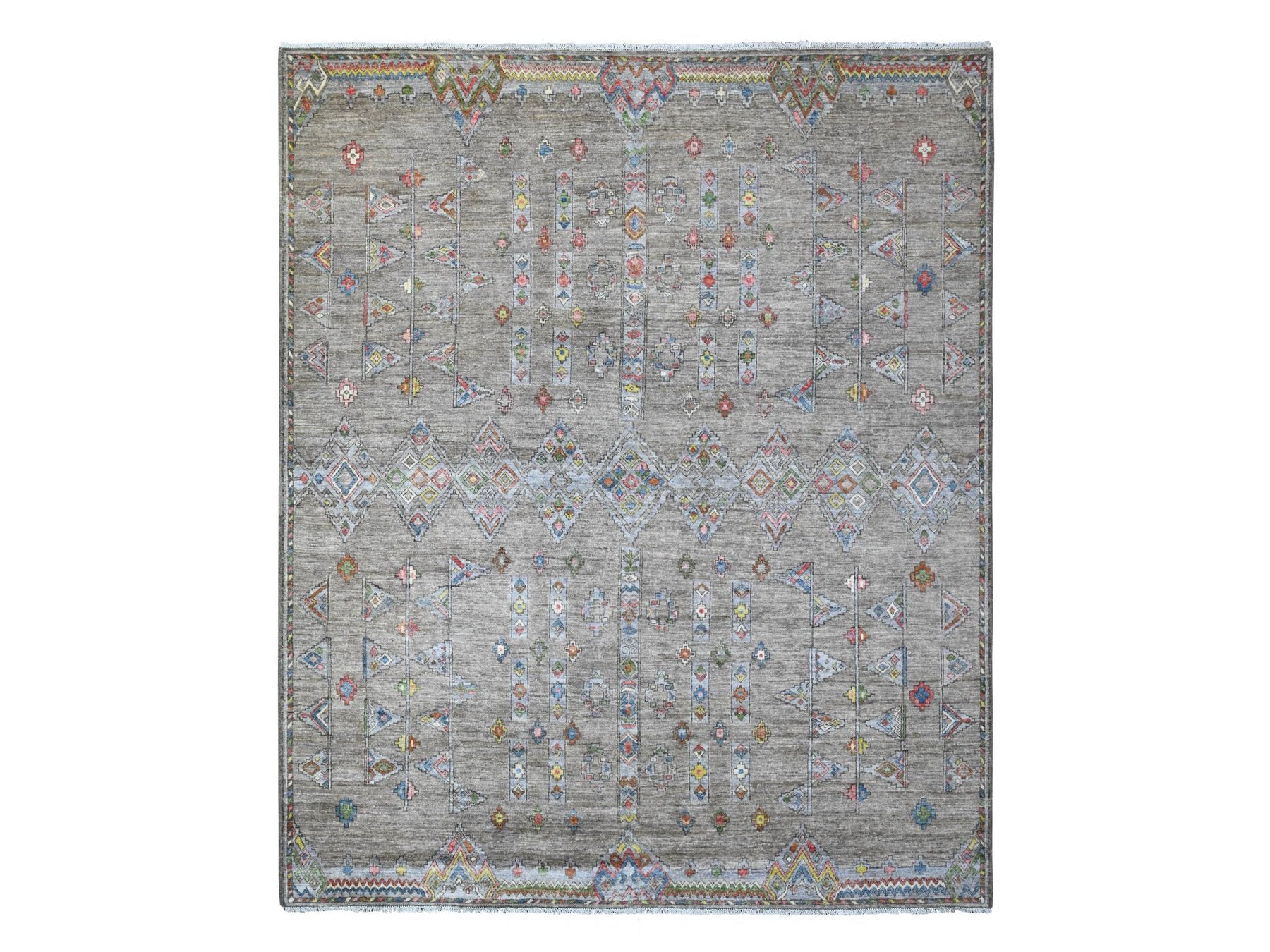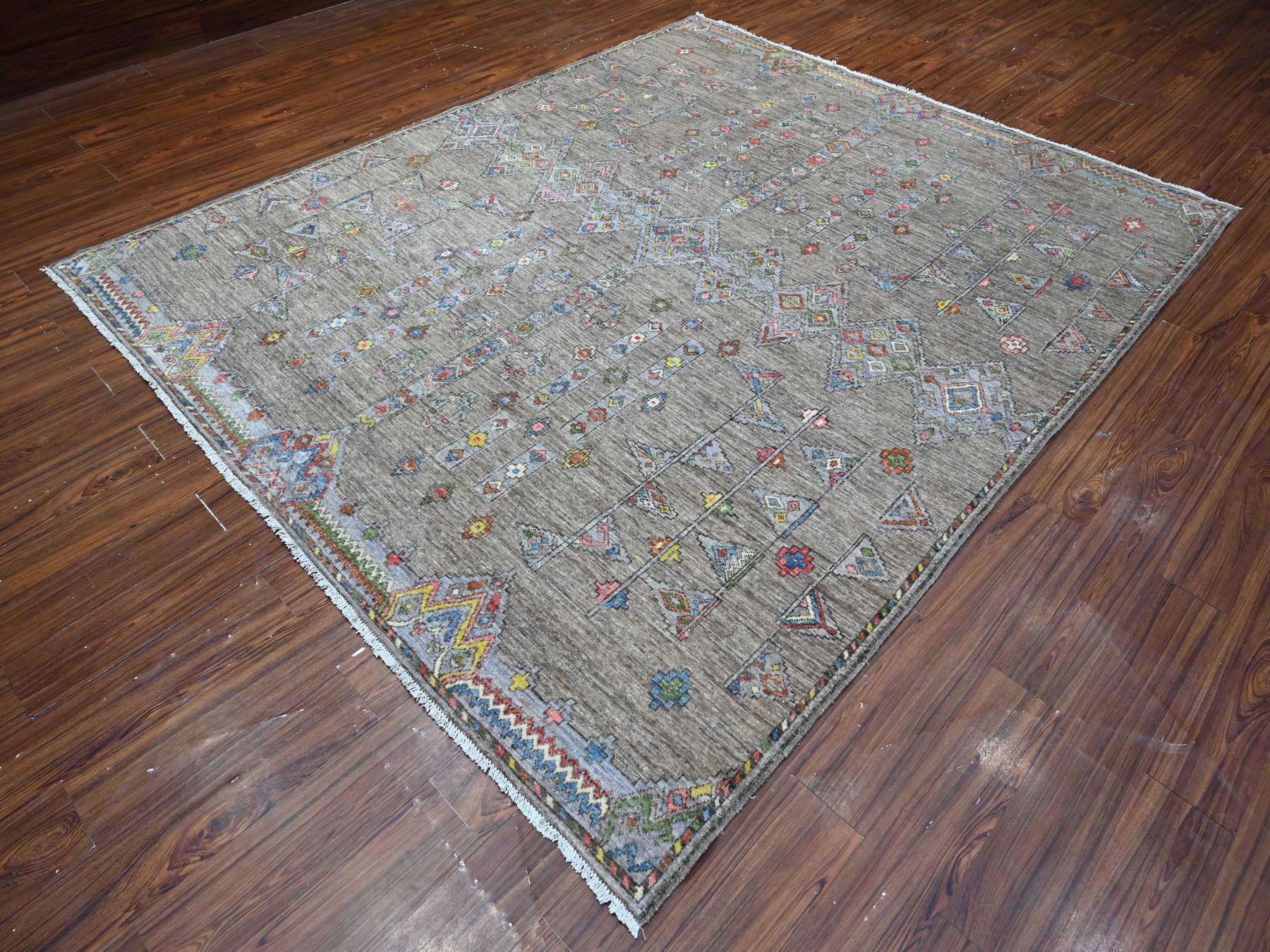 8'2" x 9'8" New Hand Knotted Grey Wool Rectangle Oriental Rug - MOA10288957