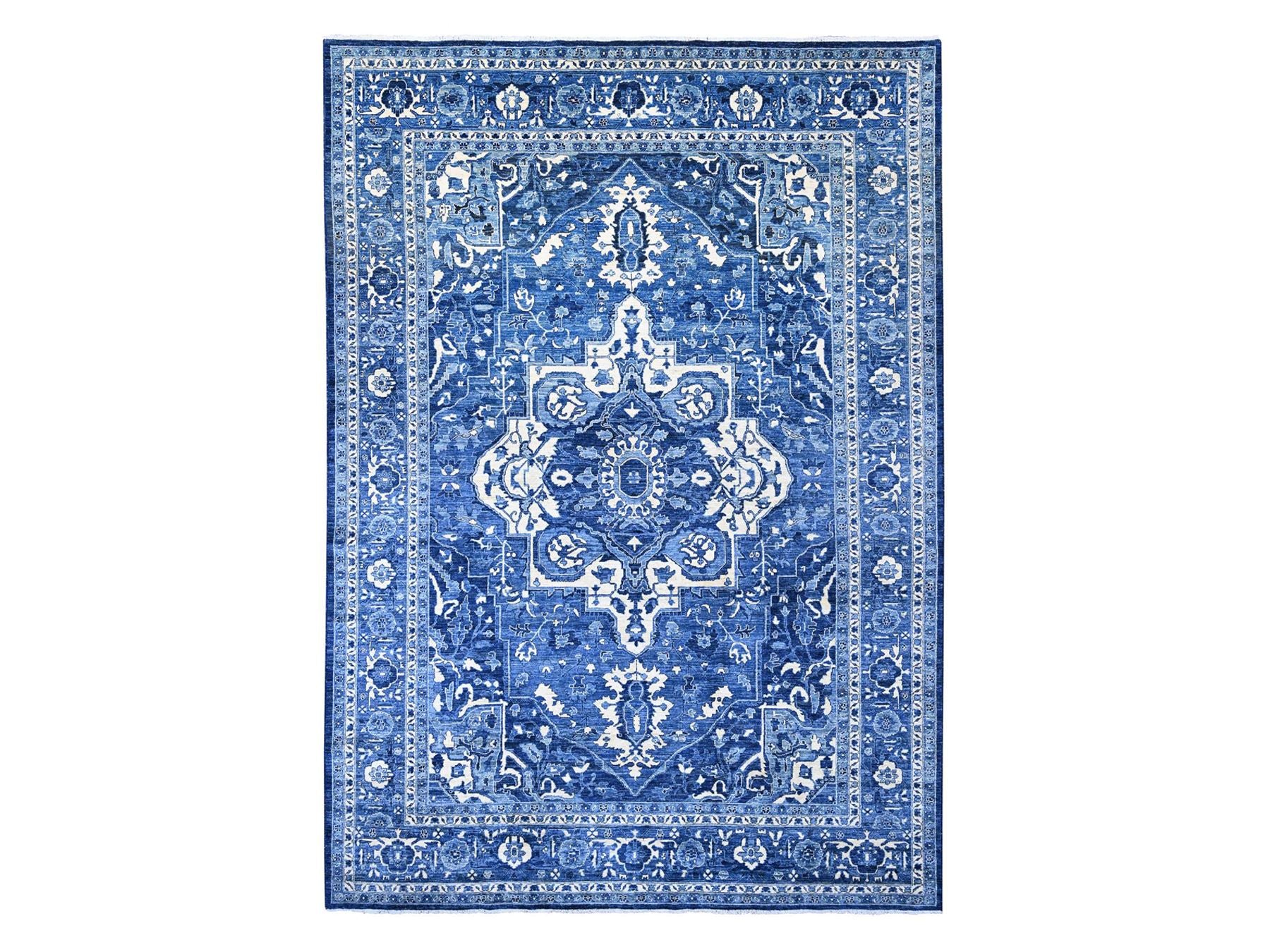 10'0" x 13'10" New Hand Knotted Blue Wool Rectangle Oriental Rug - MOA10220658