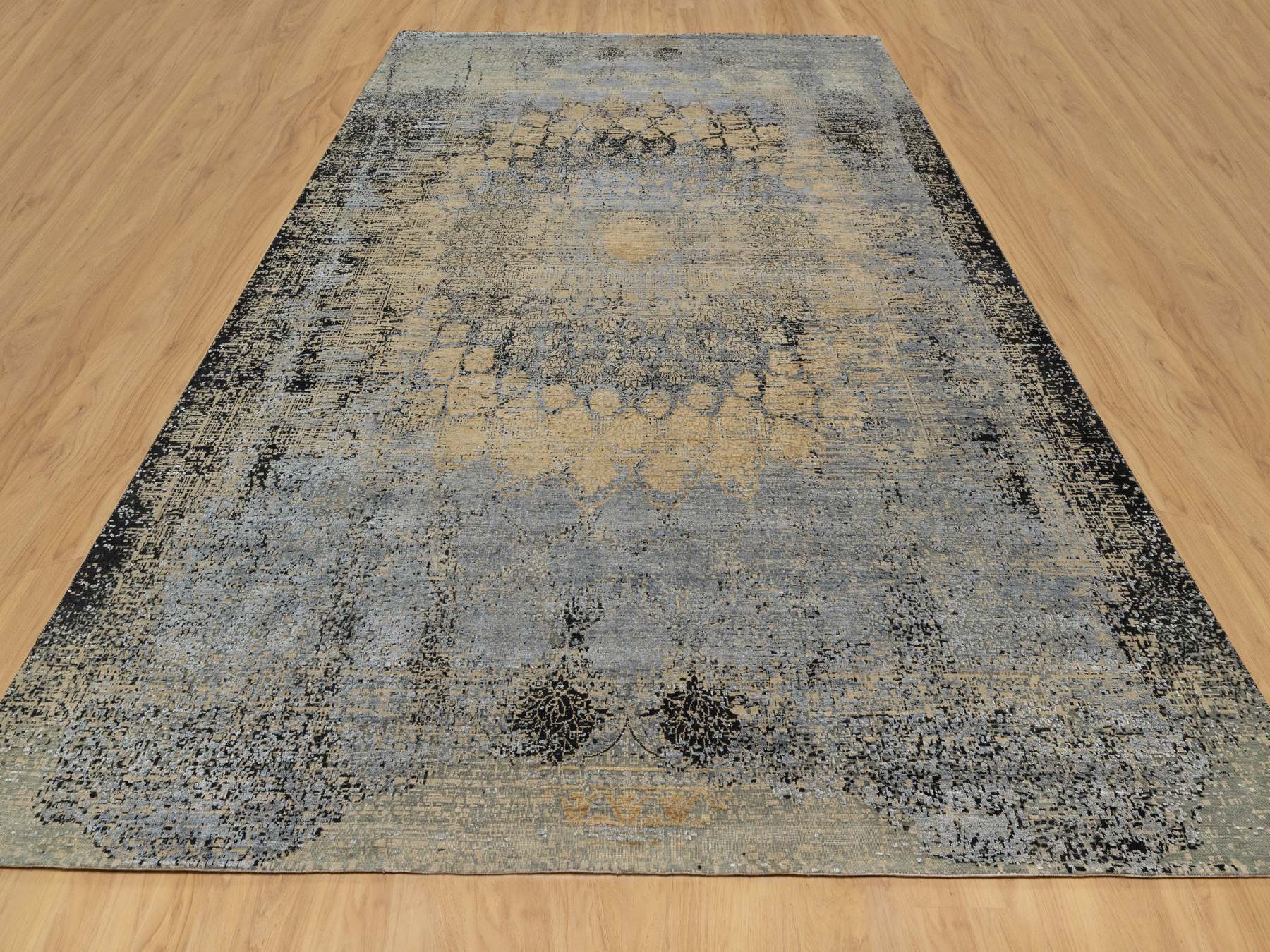 10'0" x 13'11" New Hand Knotted Brown Wool & Silk Rectangle Oriental Rug - MOA10290946