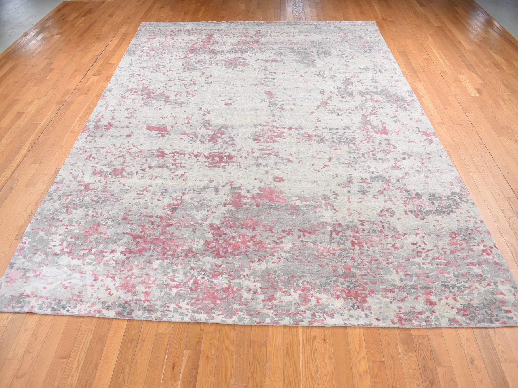 10'0" x 13'9" New Hand Knotted Pink Wool & Silk Rectangle Oriental Rug - MOA10280795