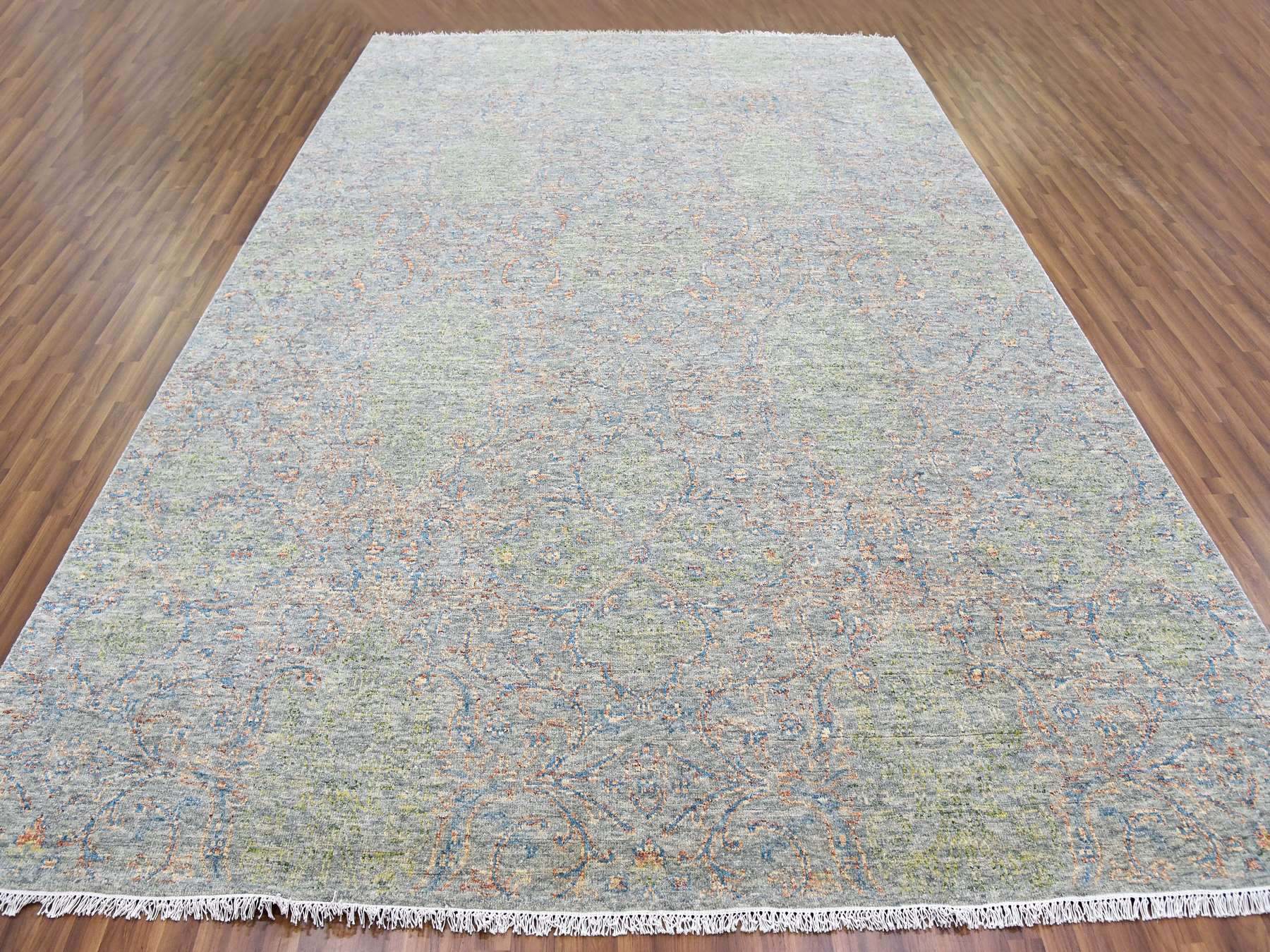 10'0" x 14'0" New Hand Knotted Green Wool Rectangle Oriental Rug - MOA10279442