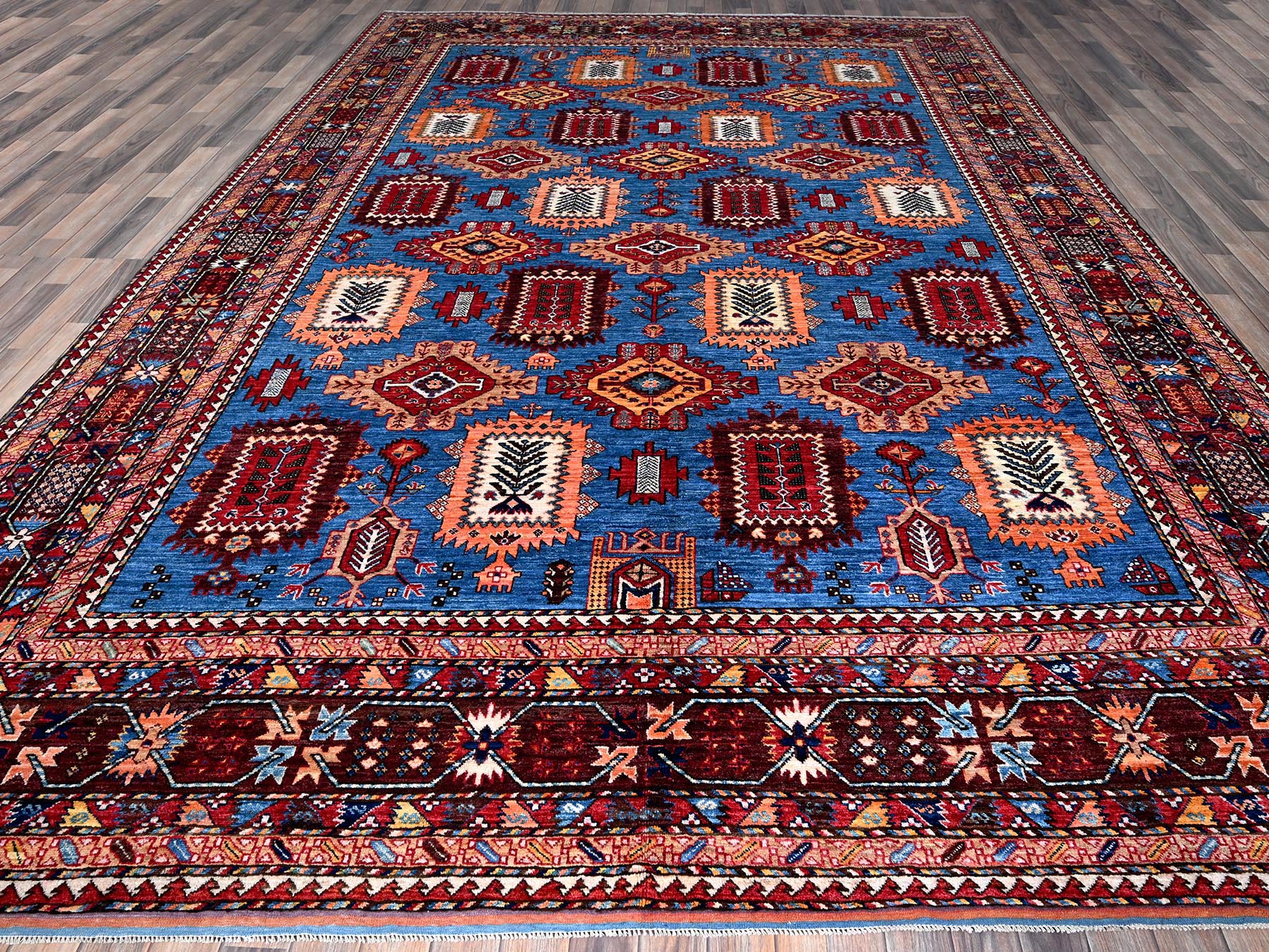 10'1" x 13'4" New Hand Knotted Blue Wool Rectangle Oriental Rug - MOA102563