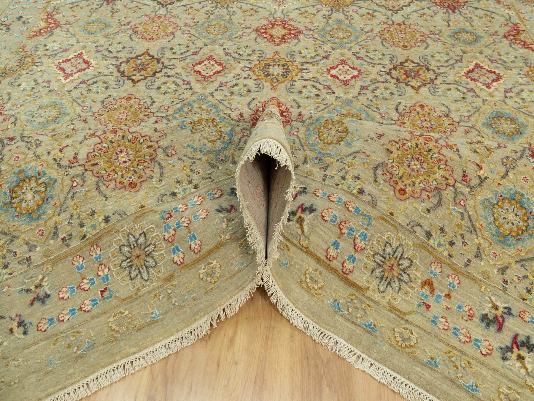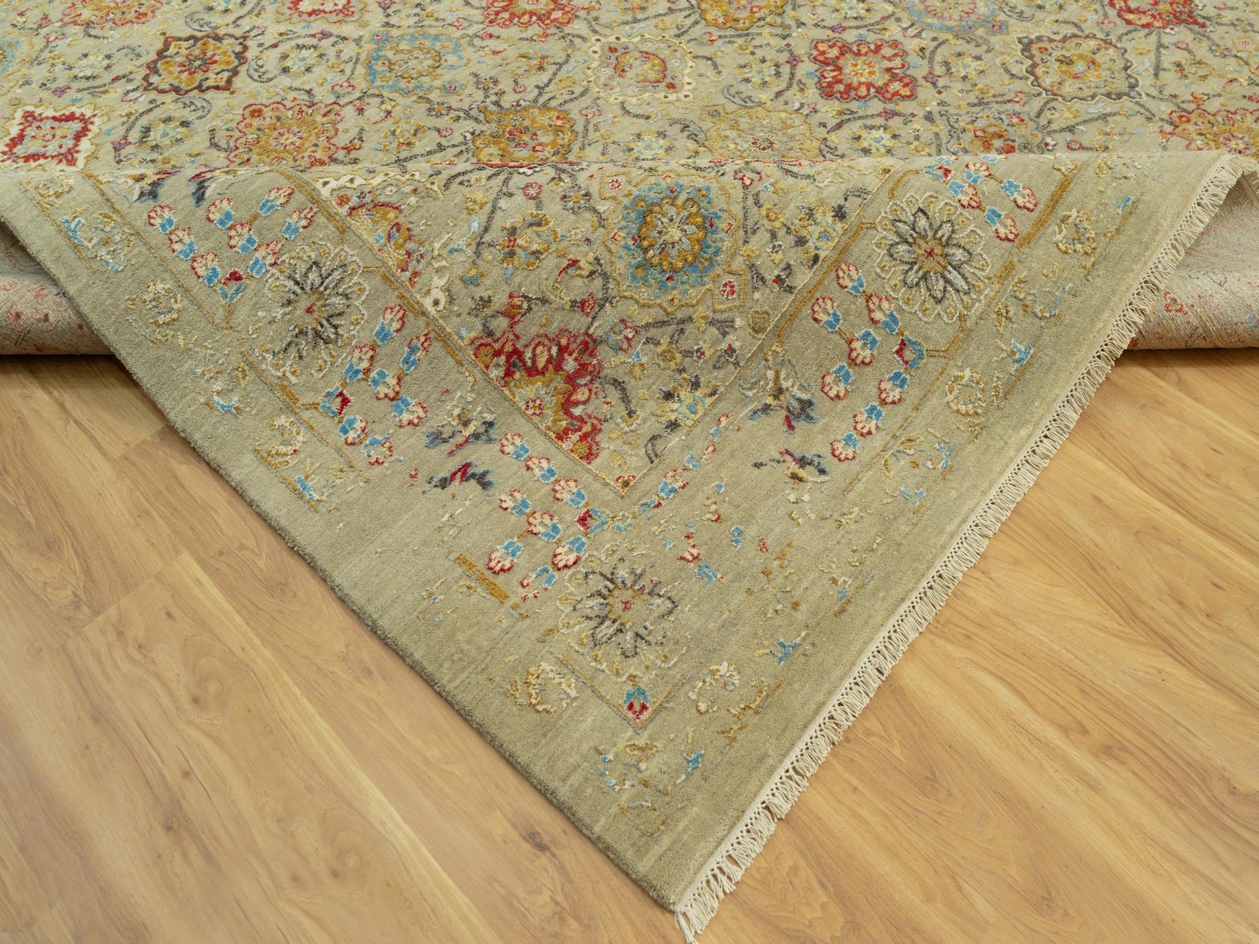 10'3" x 13'10" New Hand Knotted Beige Wool & Silk Rectangle Oriental Rug - MOA10290535
