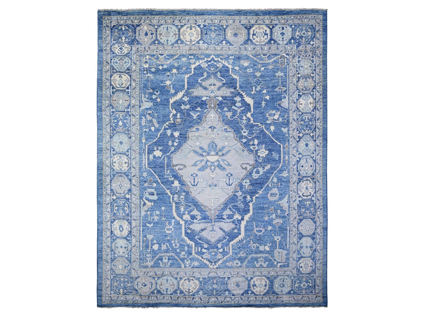 11'9" x 15'1" New Hand Knotted Blue Wool Rectangle Oriental Rug - MOA10273666