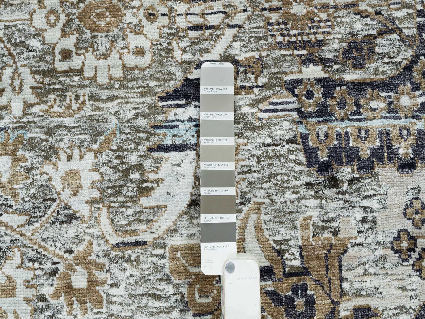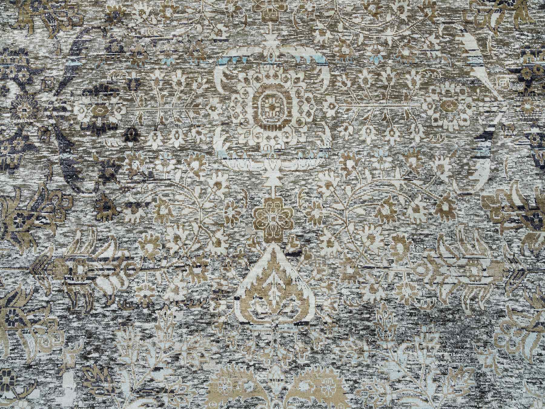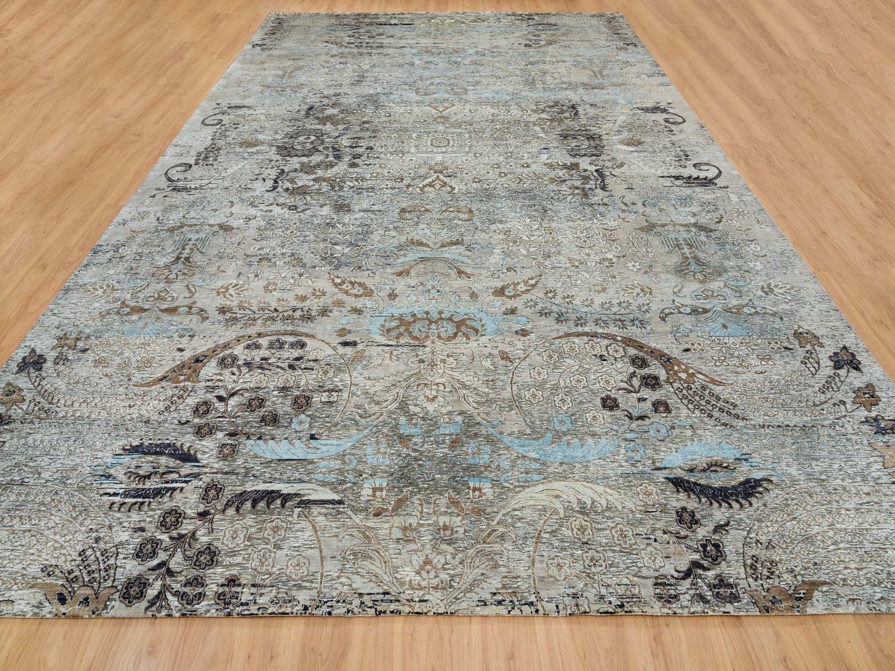 11'9" x 18'1" New Hand Knotted Grey Wool & Silk Rectangle Oriental Rug - MOA10265179