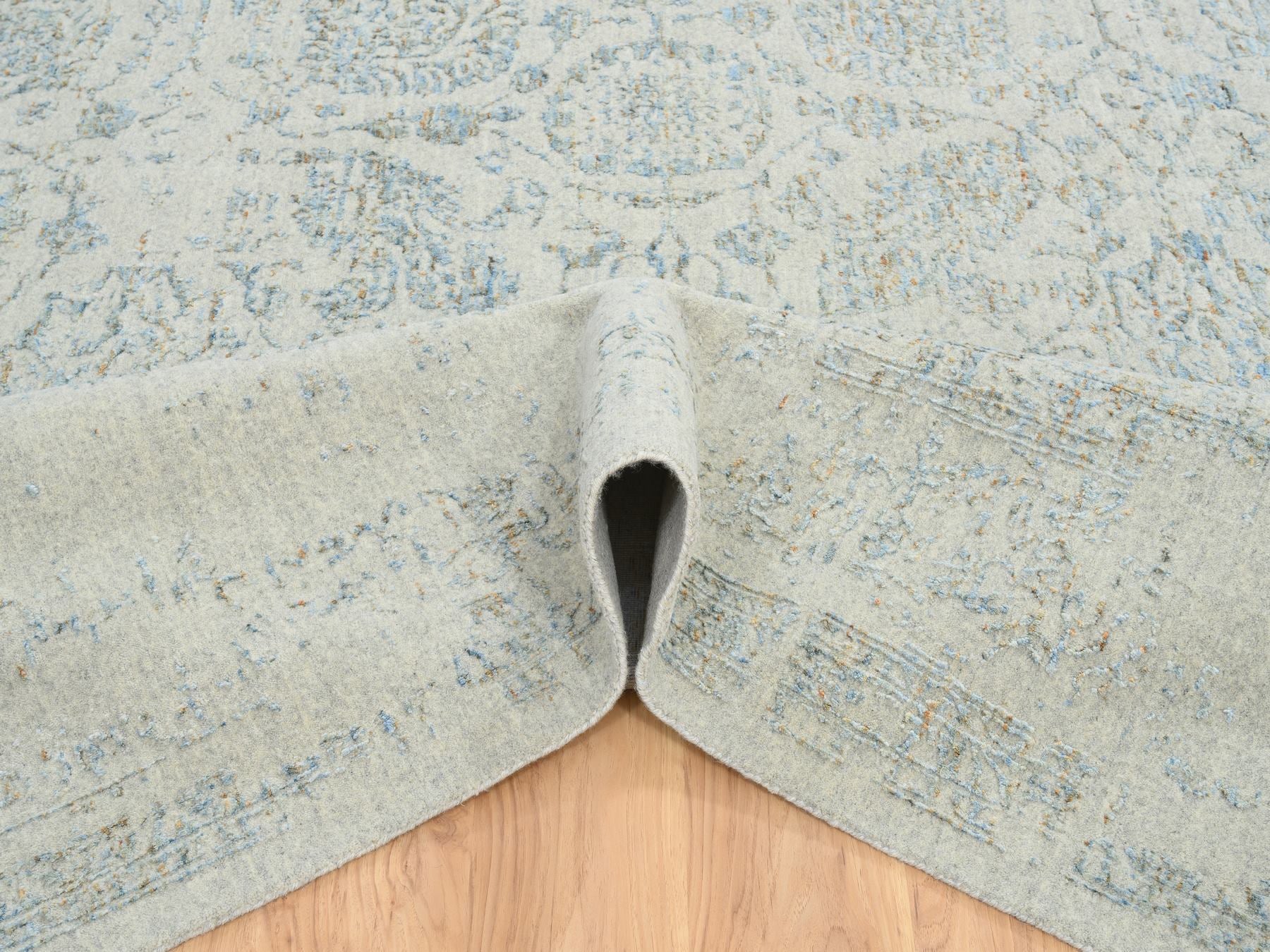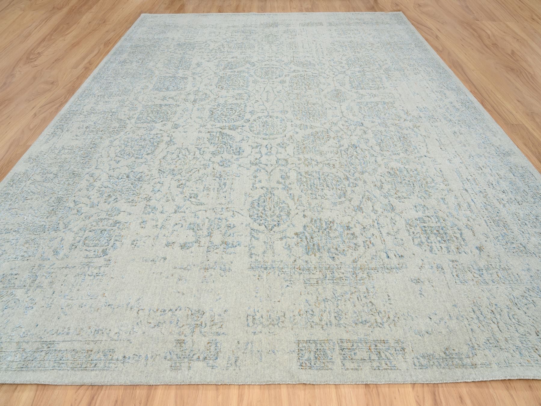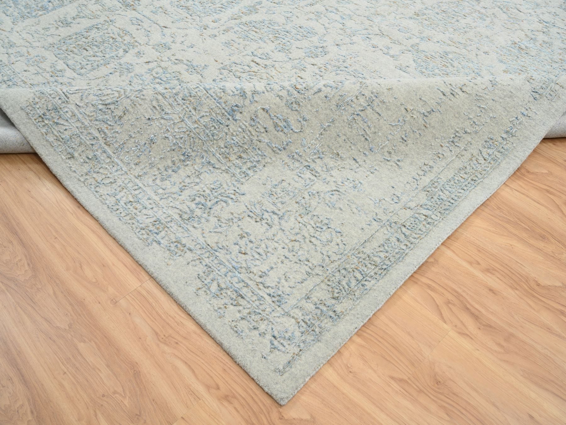 12'0" x 15'1" New Hand Loomed Blue Wool & Silk Rectangle Oriental Rug - MOA10264604