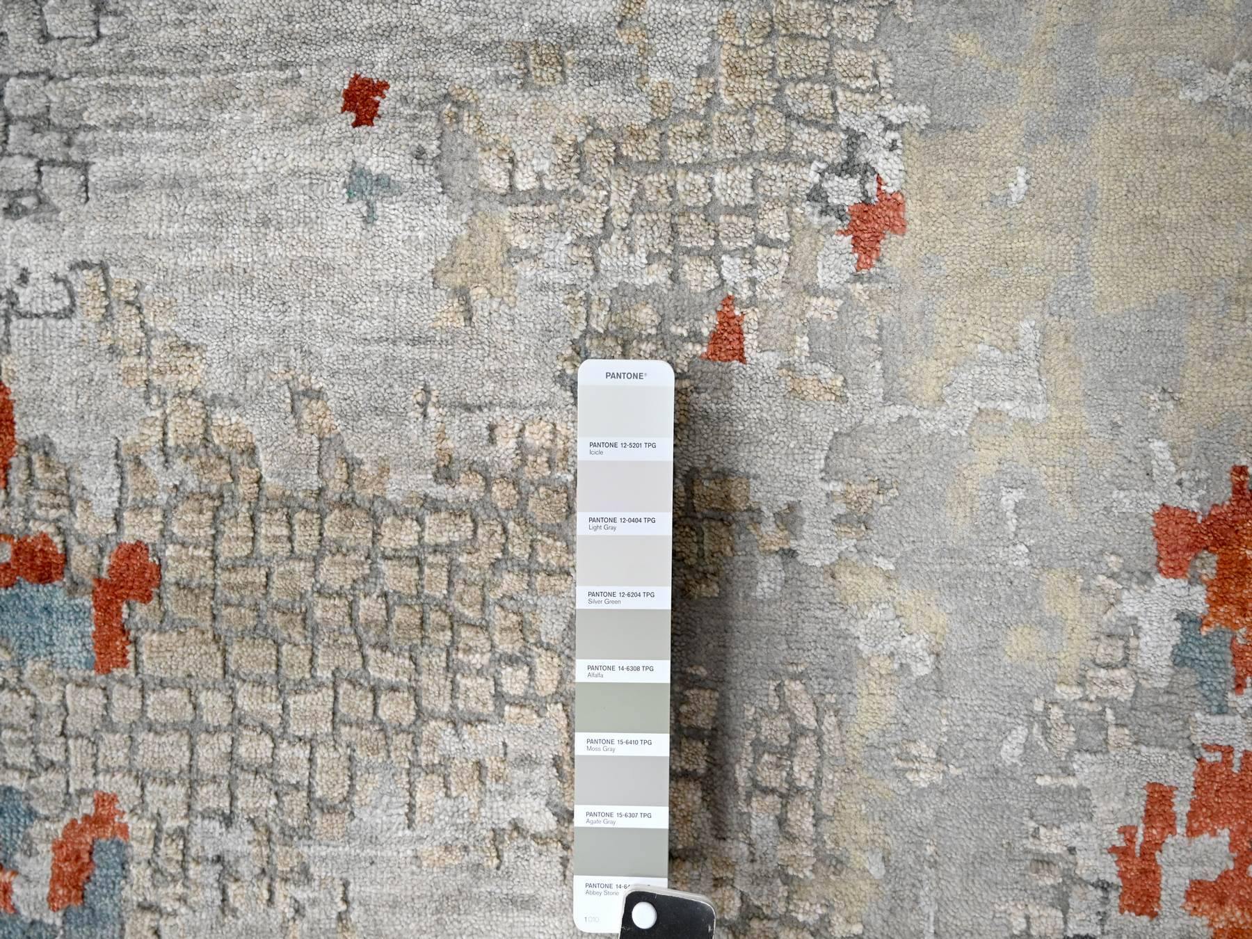 12'0" x 17'10" New Hand Knotted Grey Wool & Silk Rectangle Oriental Rug - MOA10284591
