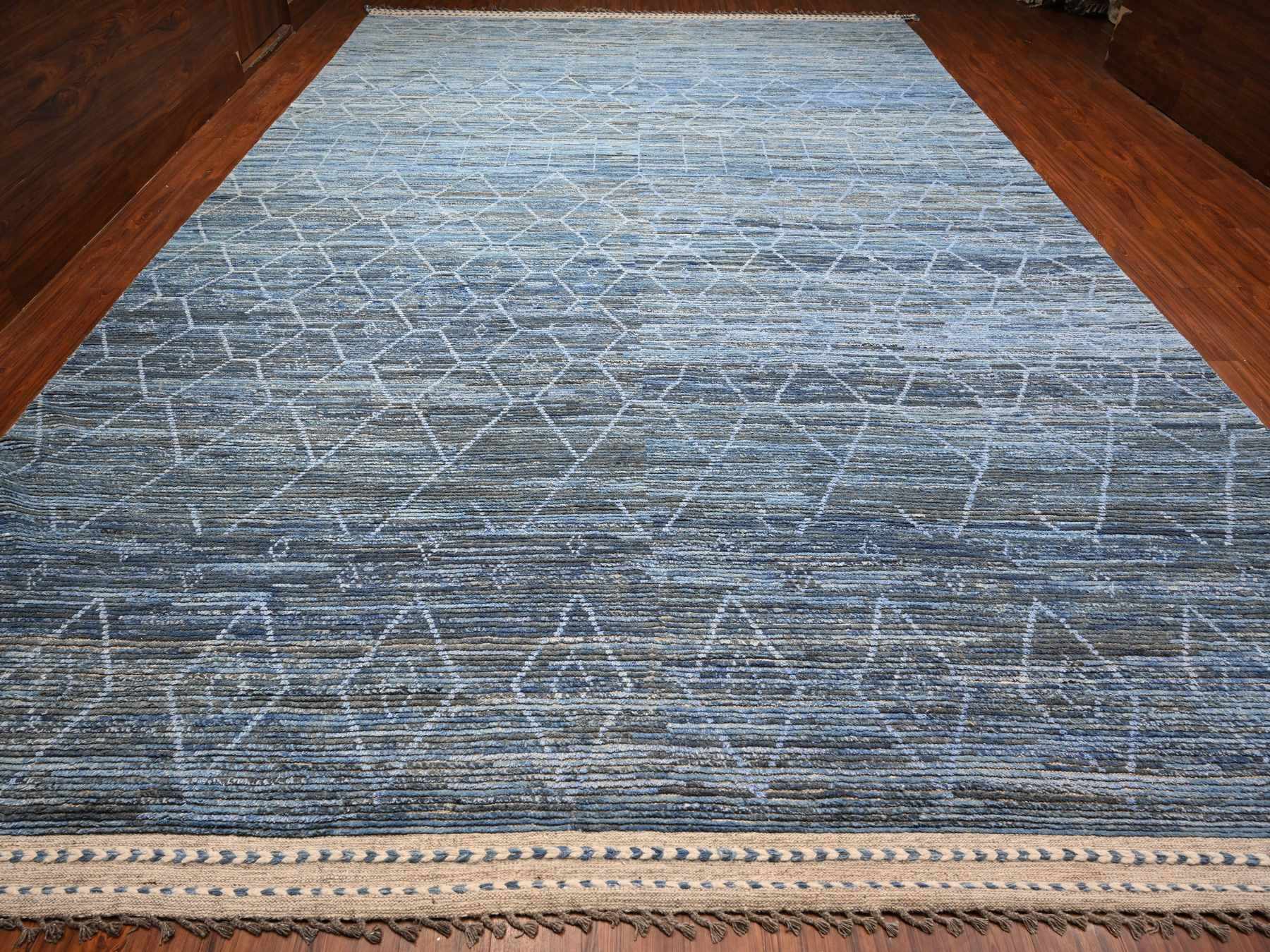12'0" x 18'5" New Hand Knotted Blue Wool Rectangle Oriental Rug - MOA10289170