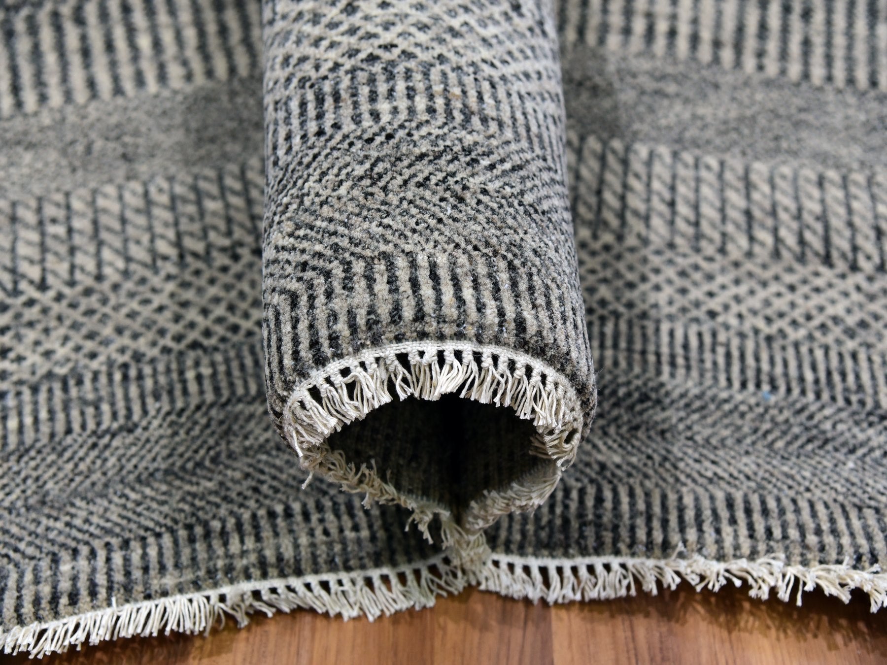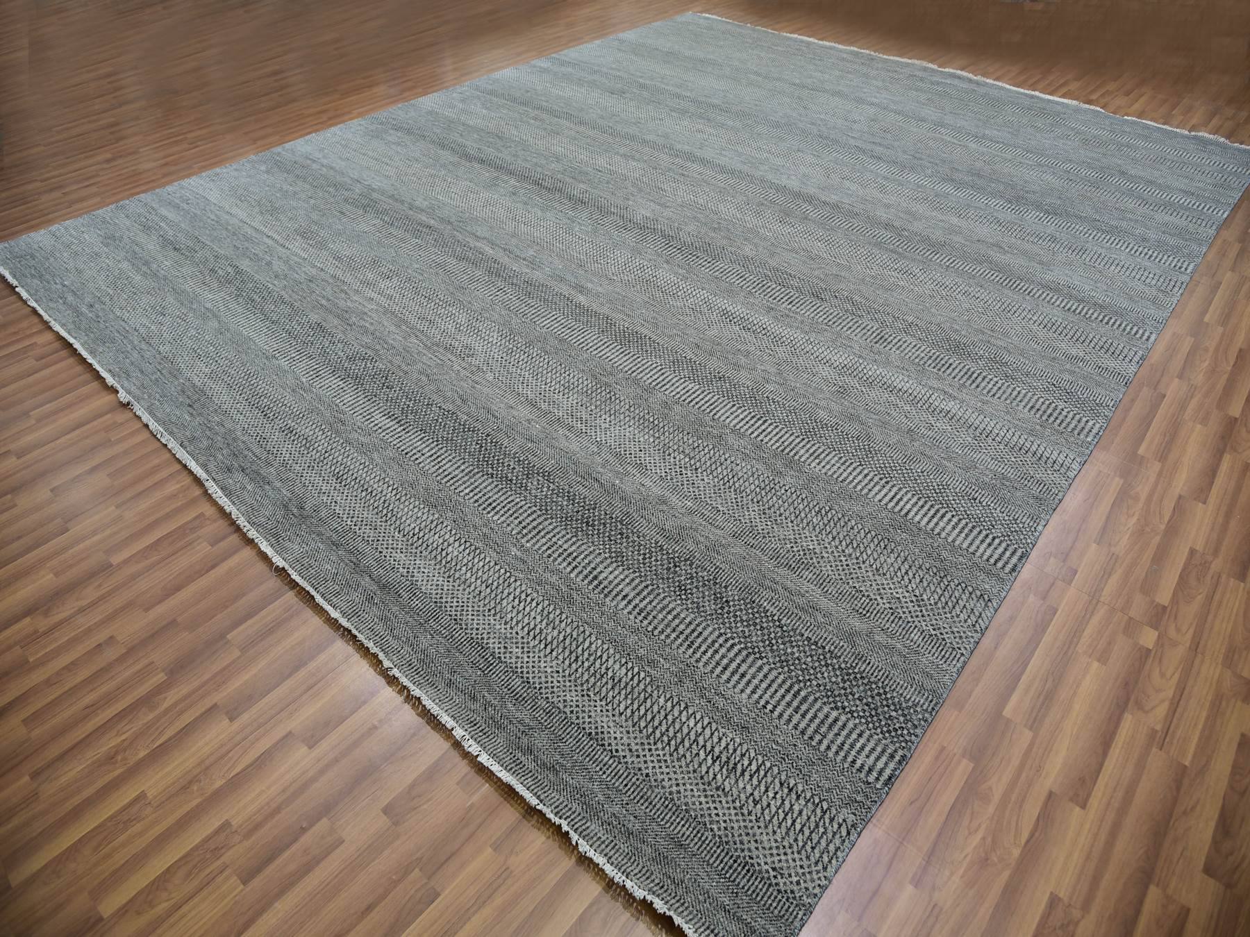12'1" x 15'1" New Hand Knotted Grey Wool Rectangle Oriental Rug - MOA10279868