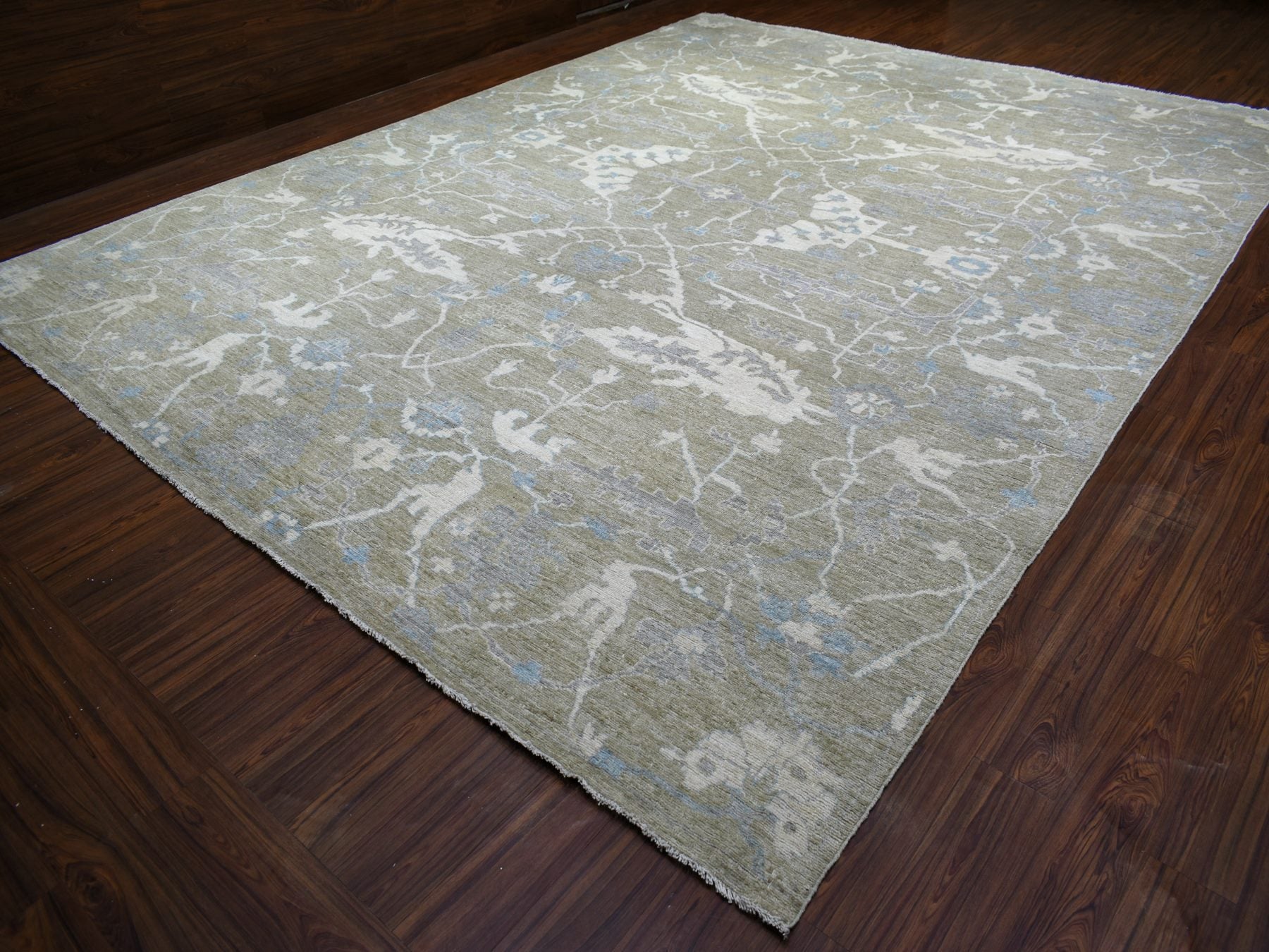 12'1" x 15'5" New Hand Knotted Green Wool Rectangle Oriental Rug - MOA10270999
