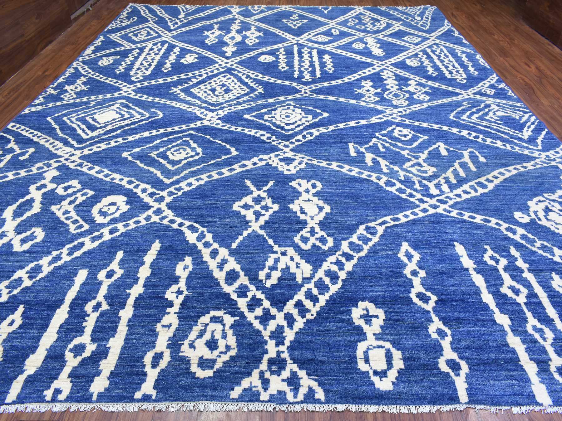 12'2" x 15'2" New Hand Knotted Blue Wool Rectangle Oriental Rug - MOA10272613