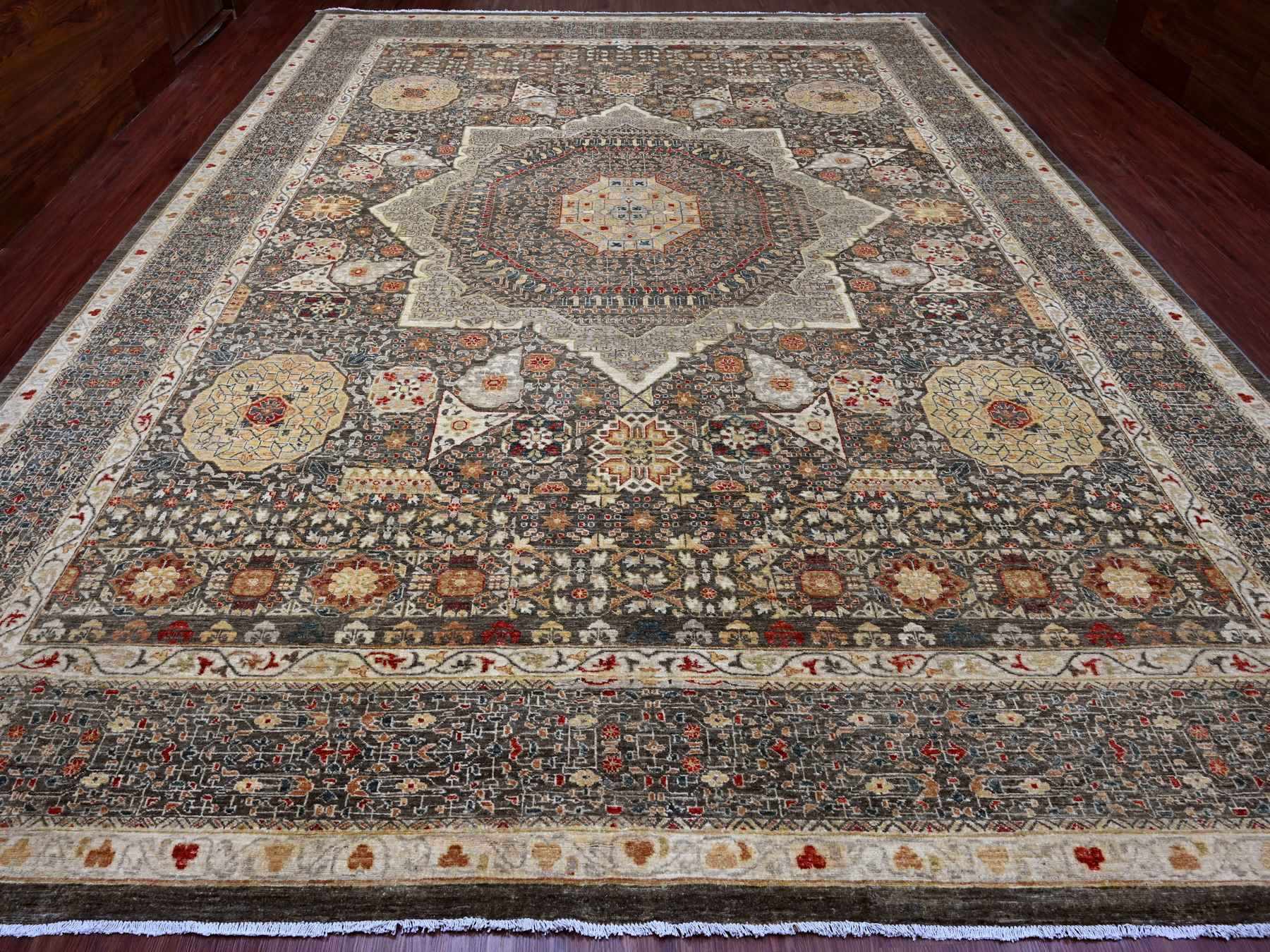 12'2" x 16'0" New Hand Knotted Brown Wool Rectangle Oriental Rug - MOA10220452