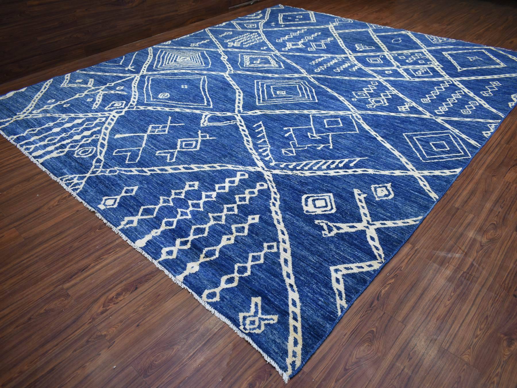 12'3" x 14'3" New Hand Knotted Blue Wool Rectangle Oriental Rug - MOA10271714