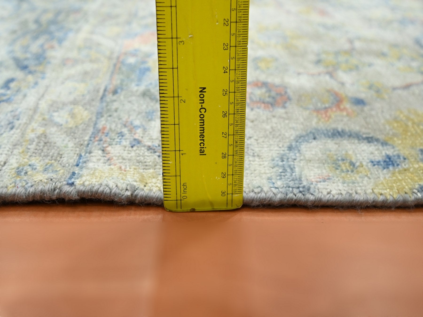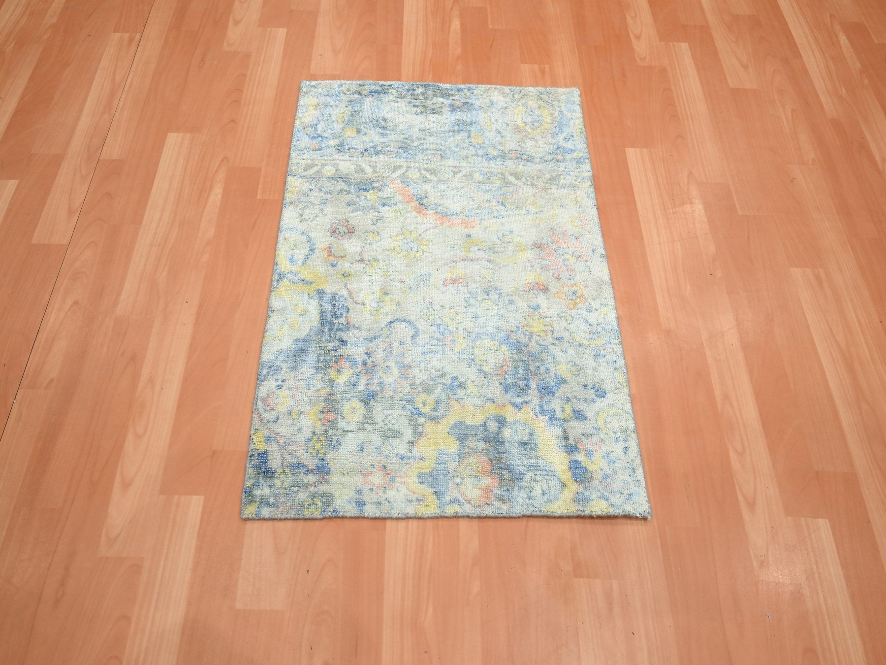 2'1" x 2'10" New Hand Knotted Grey Wool & Pure Silk Rectangle Oriental Rug - MOA10275664