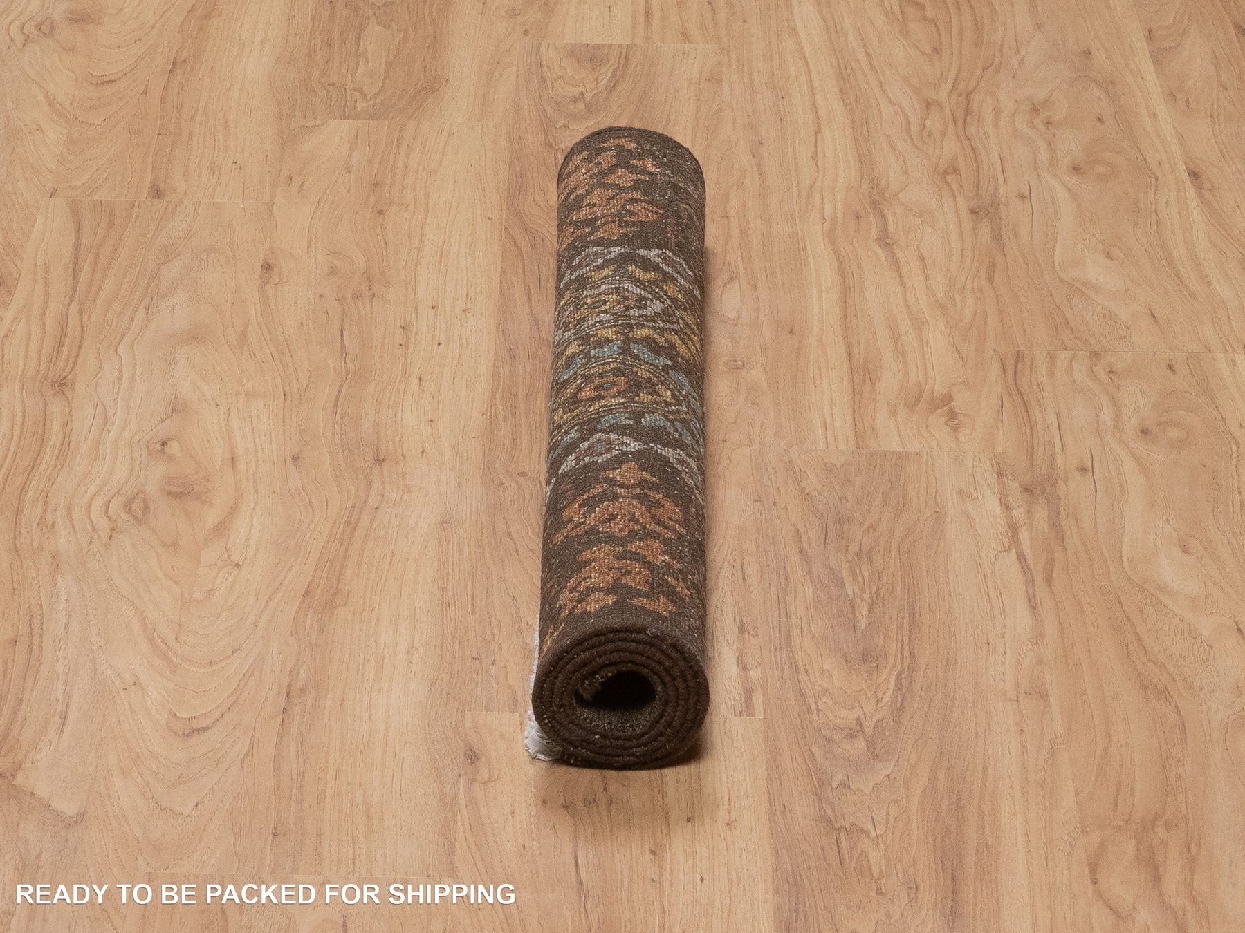 2'11" x 4'0" New Hand Knotted Brown Wool Rectangle Oriental Rug - MOA10291358