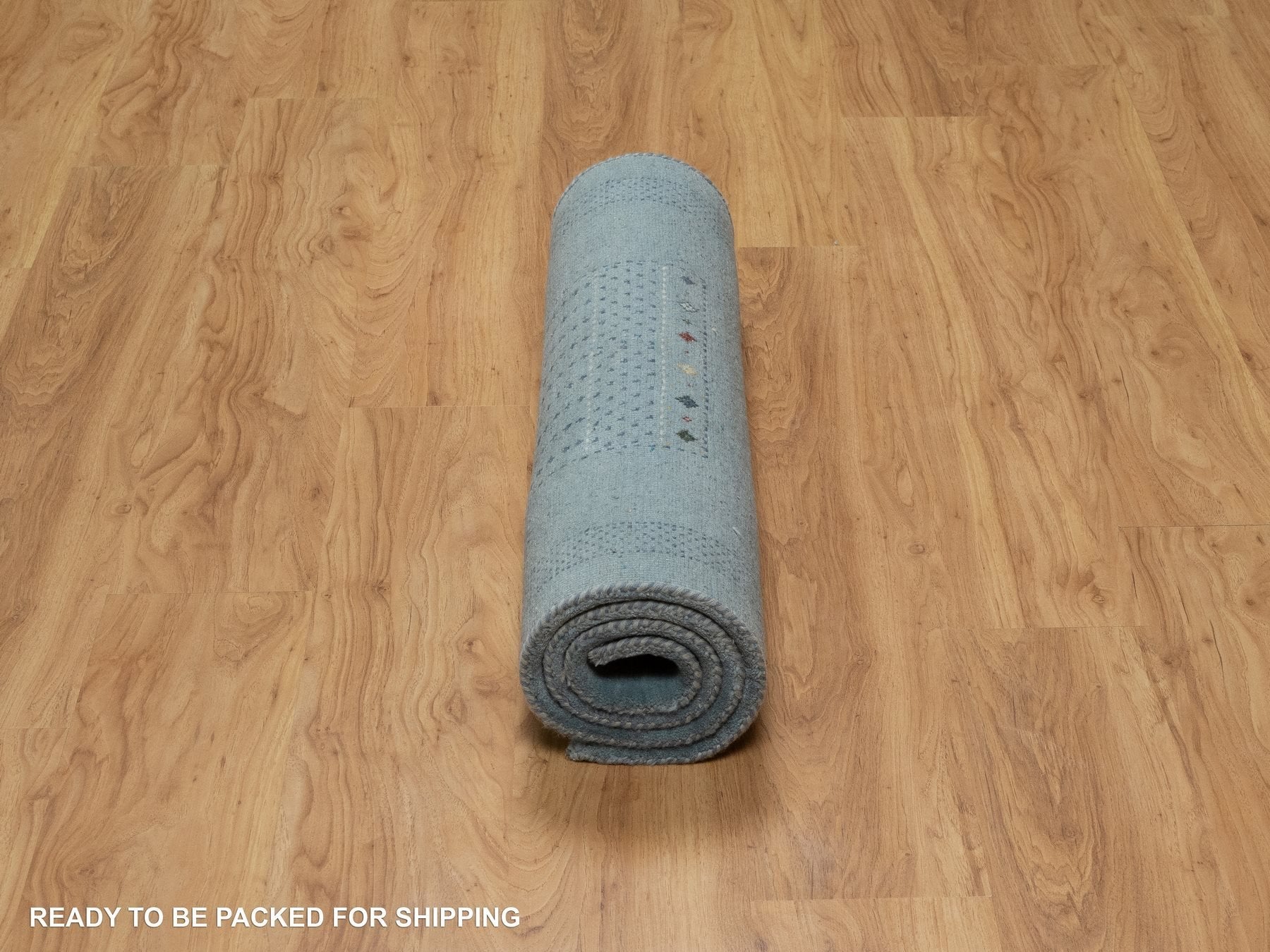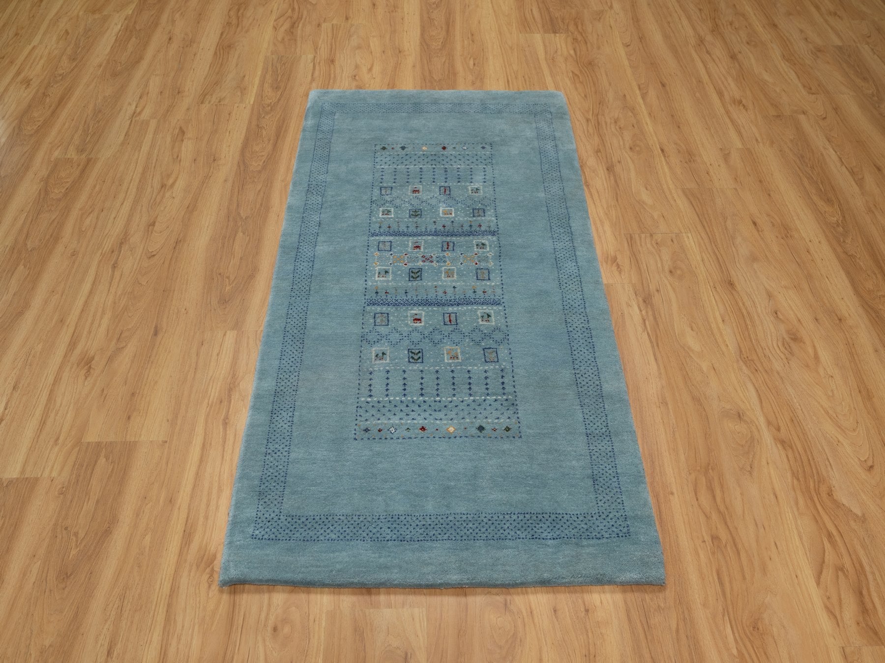 2'11" x 5'6" New Hand Knotted Blue Wool Rectangle Oriental Rug - MOA10291311