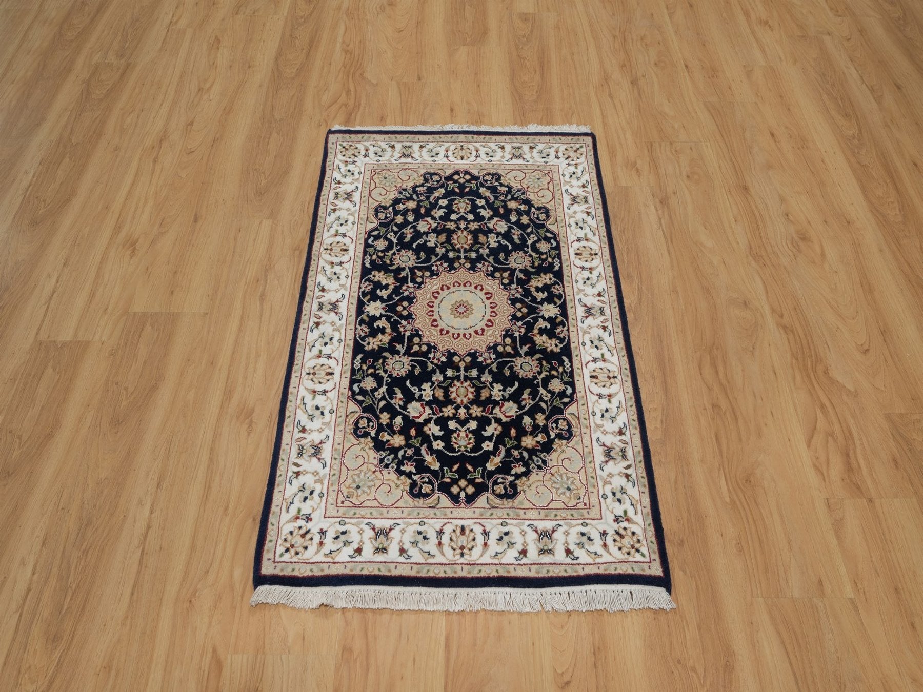 2'8" x 4'2" New Hand Knotted Blue Wool & Silk Rectangle Oriental Rug - MOA10291533