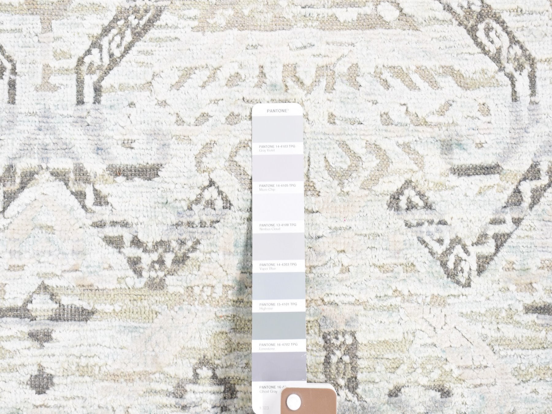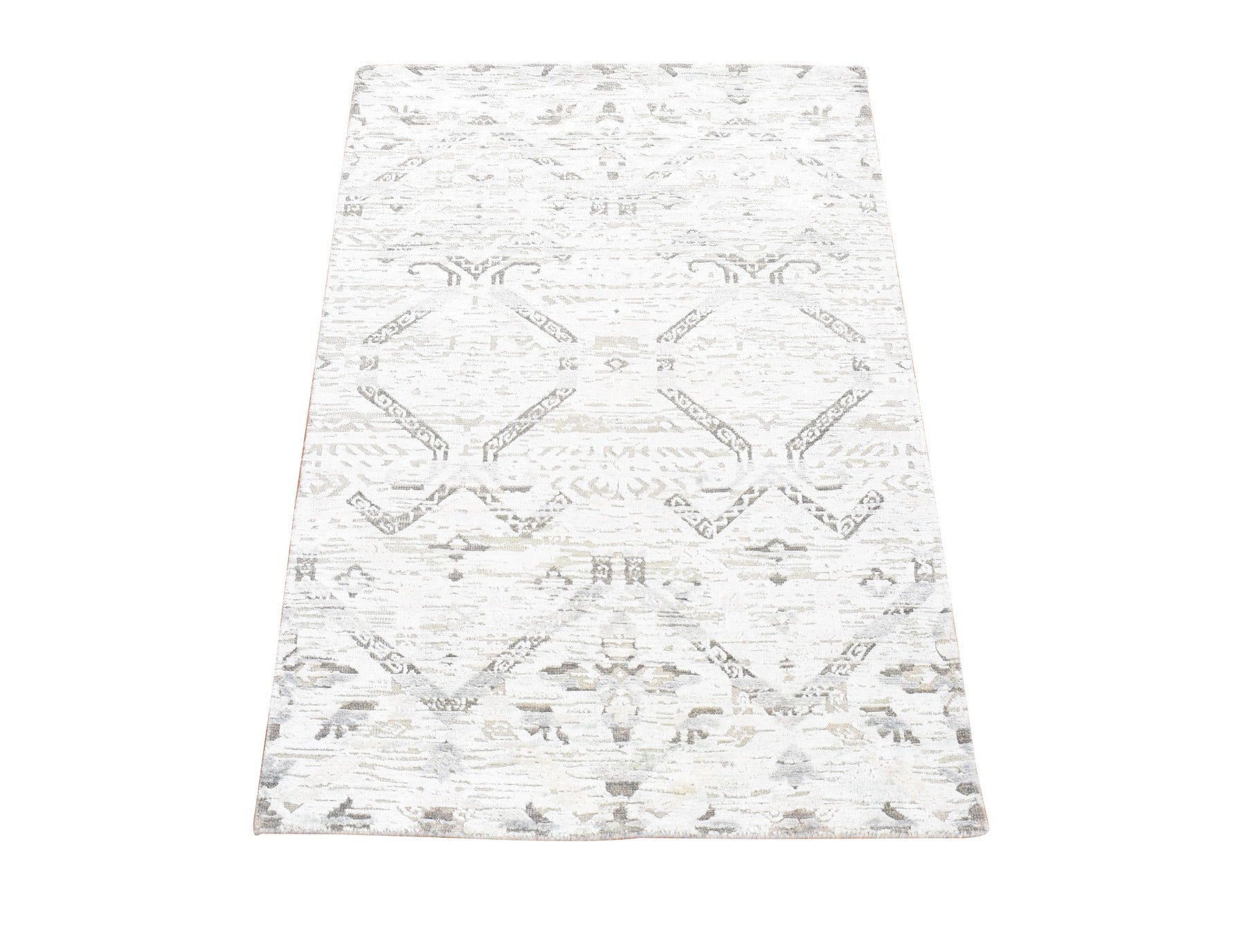 3'0" x 5'2" New Hand Knotted Grey Wool & Silk Rectangle Oriental Rug - MOA10280744