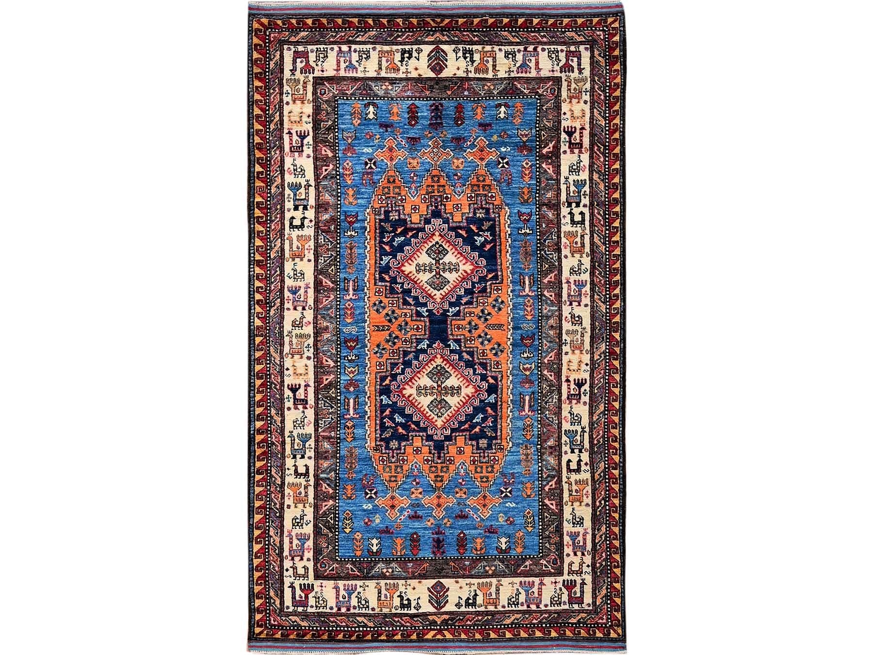 3'11" x 6'4" New Hand Knotted Blue Wool Rectangle Oriental Rug - MOA102600