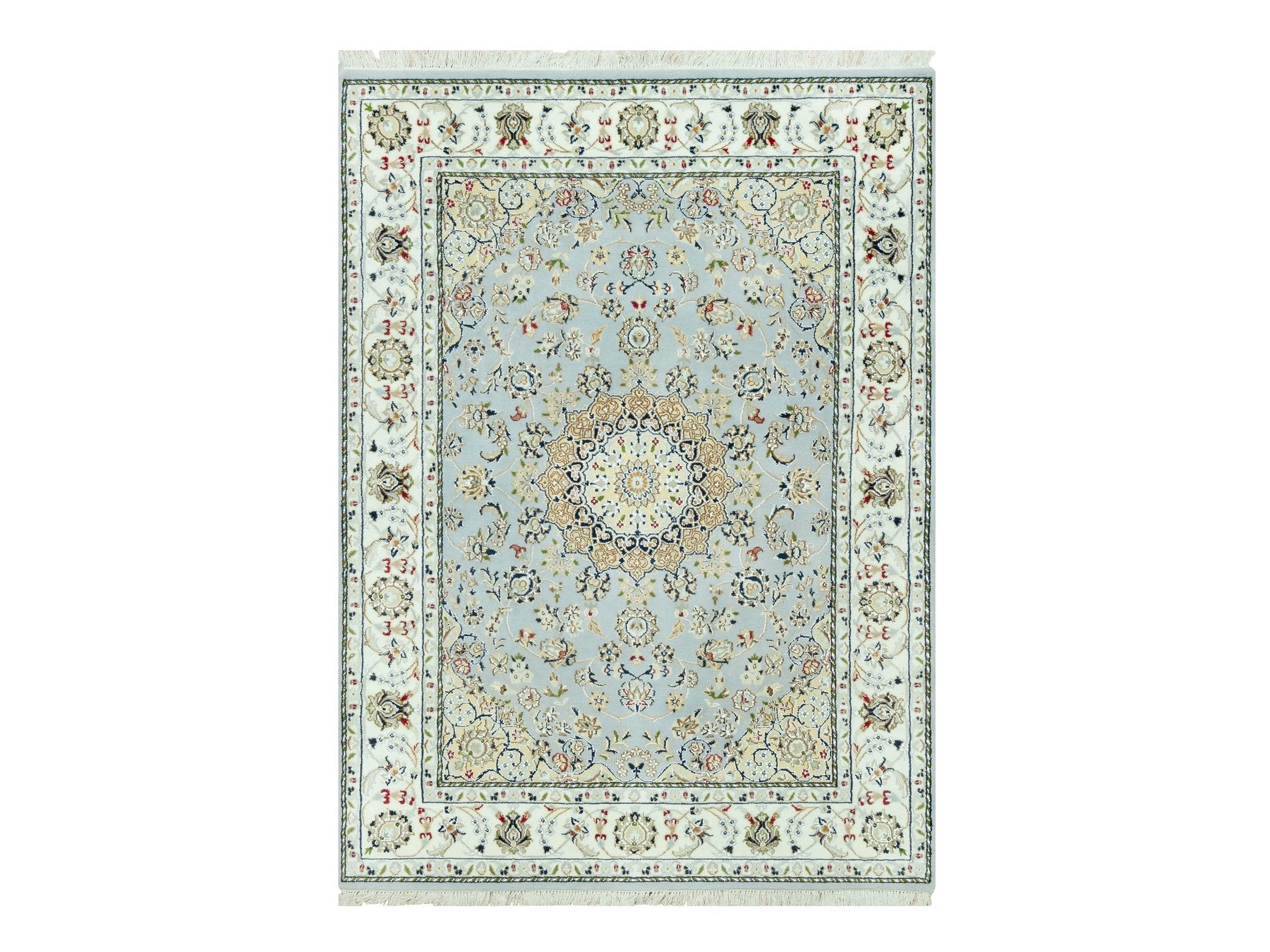 4'11" x 6'9" New Hand Knotted Blue Wool Rectangle Oriental Rug - MOA10290620