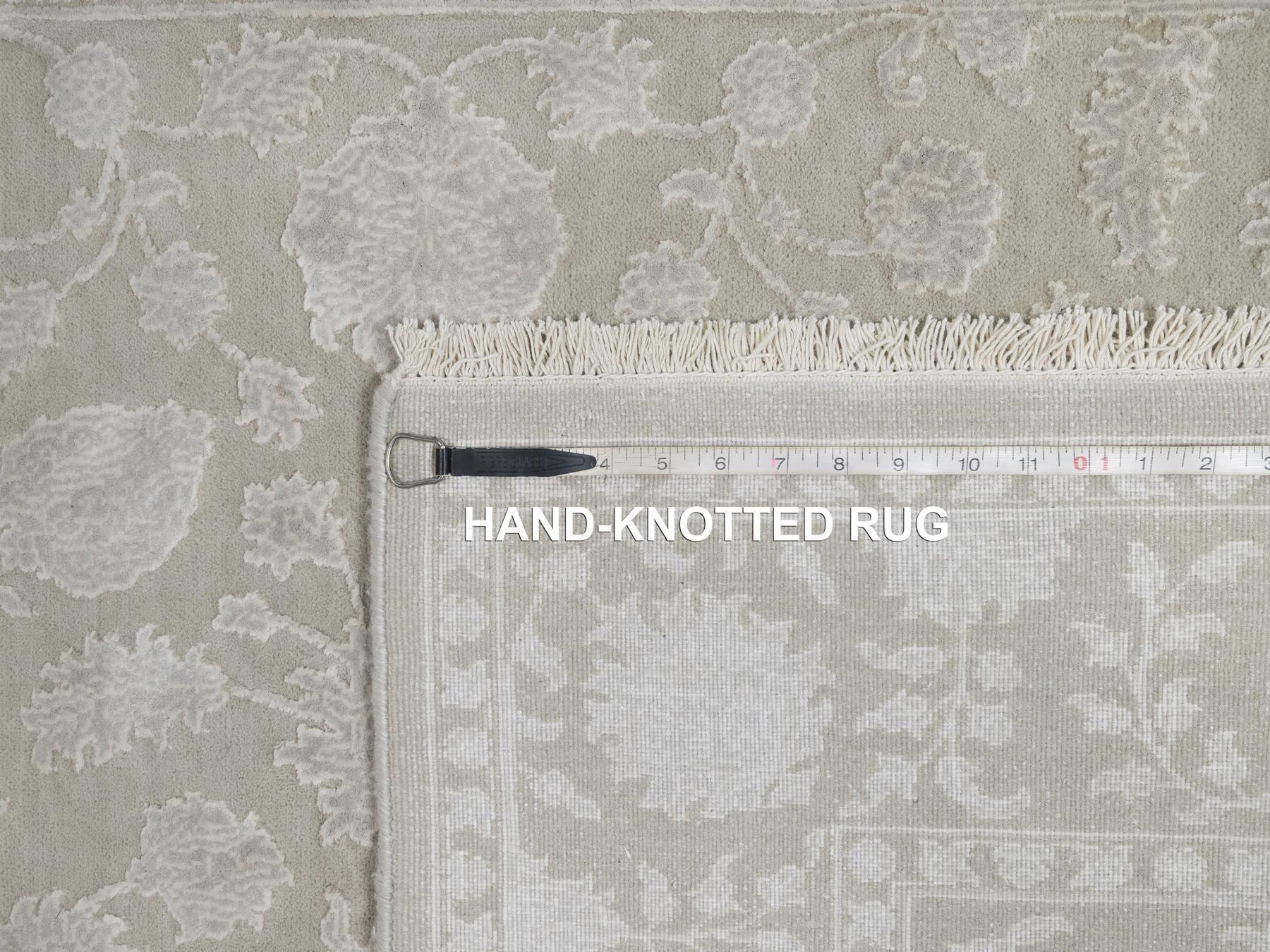 4'9" x 6'10" New Hand Knotted Grey Wool & Silk Rectangle Oriental Rug - MOA10291356