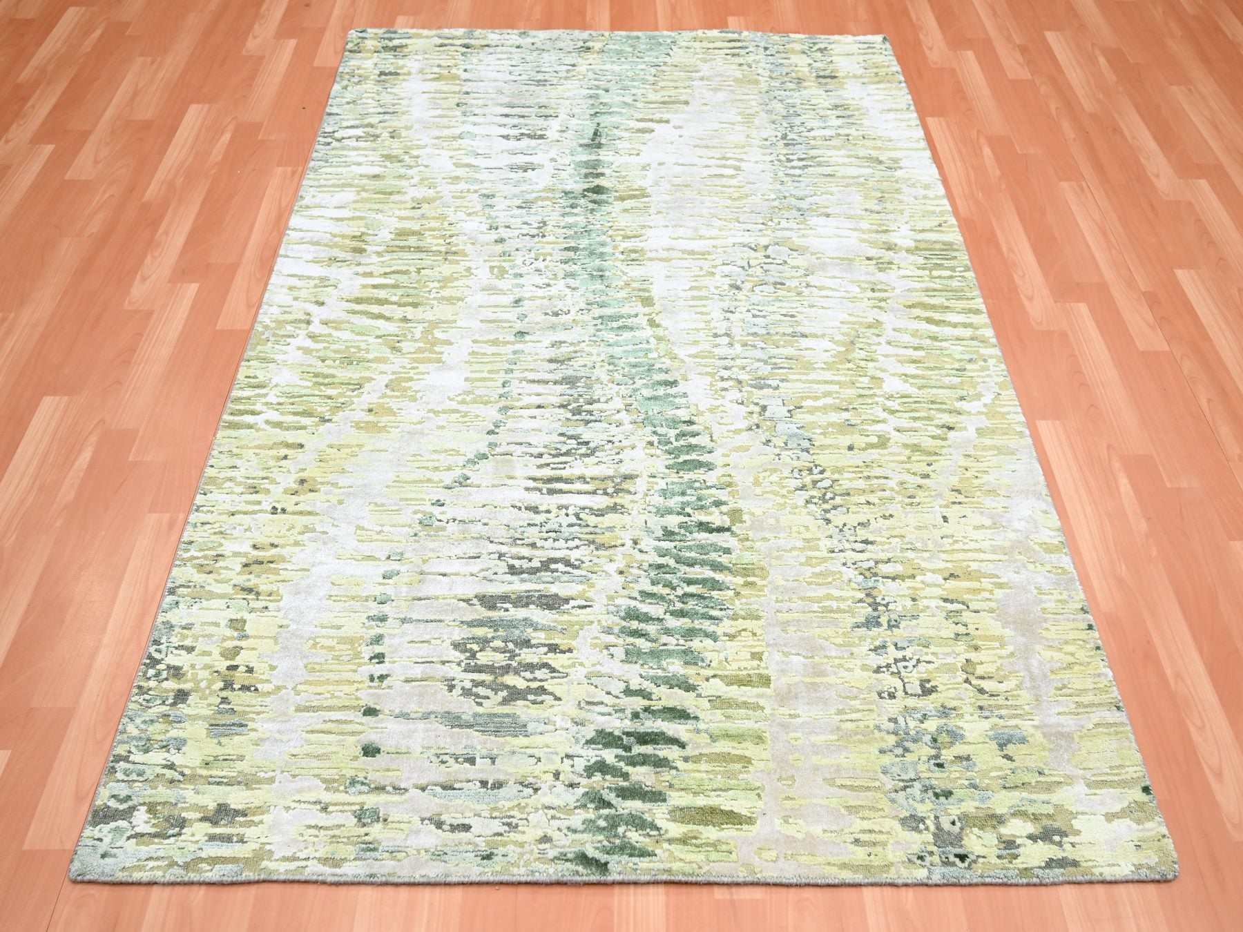5'1" x 7'3" New Hand Knotted Green Silk Rectangle Oriental Rug - MOA10275477